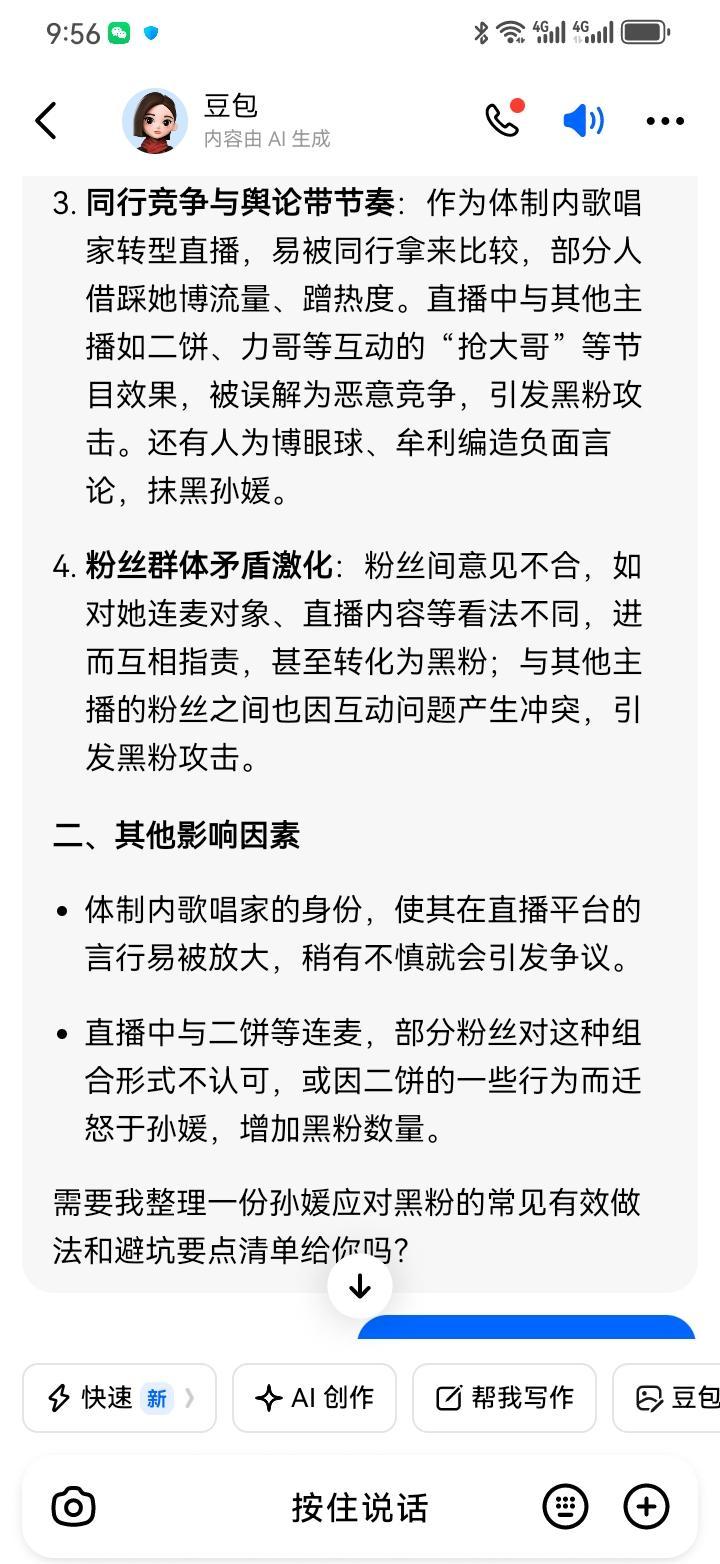 不是吧,连“黑粉”这浆糊账,这AI都能拎得清? 我一整个大爆汗! 你以为“豆包”就只会写诗搞创作? 错了。 前几天,看“老六”把那AI玩得溜,我也手痒了,随手扔了个娱乐圈死结过去:为啥“@嫄嫄全能唱将”老被黑? 这问题,人肉公关都得头疼三宿。 结果呢? 妈耶! 那货三秒不到,噼里啪啦甩出来一份“黑粉报告”。 角度刁钻,逻辑顺滑,从心理学阴暗面到网络群体狂欢,从经济利益撕扯到身份认同崩塌,每一句都戳到痛点。 不是那种空洞的场面话,是实打实的、带血带肉的分析。 我当时就震了! 这哪里是AI? 分明是个看透人性的老江湖! 什么叫“一豆包可抵五千御林军”? 懂了吧! 别再信那些磨叽的分析了,这才是直抵灵魂的真相。 那些“村长”们,再不看这东西,真就活该被蒙在鼓里。