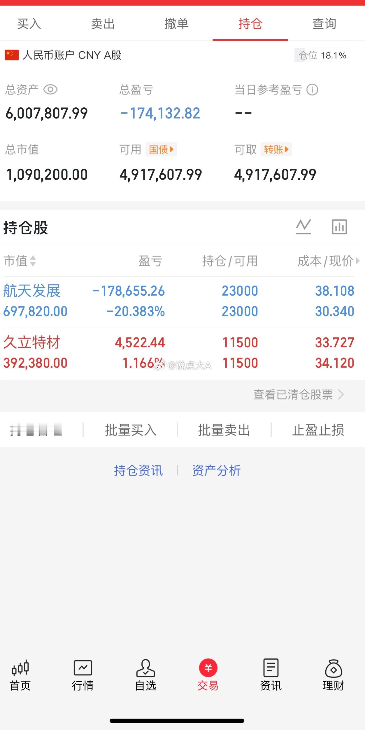 持有:航天发展000547久立特材002318