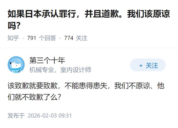如果日本承认罪行,并且道歉。我们该原谅吗?