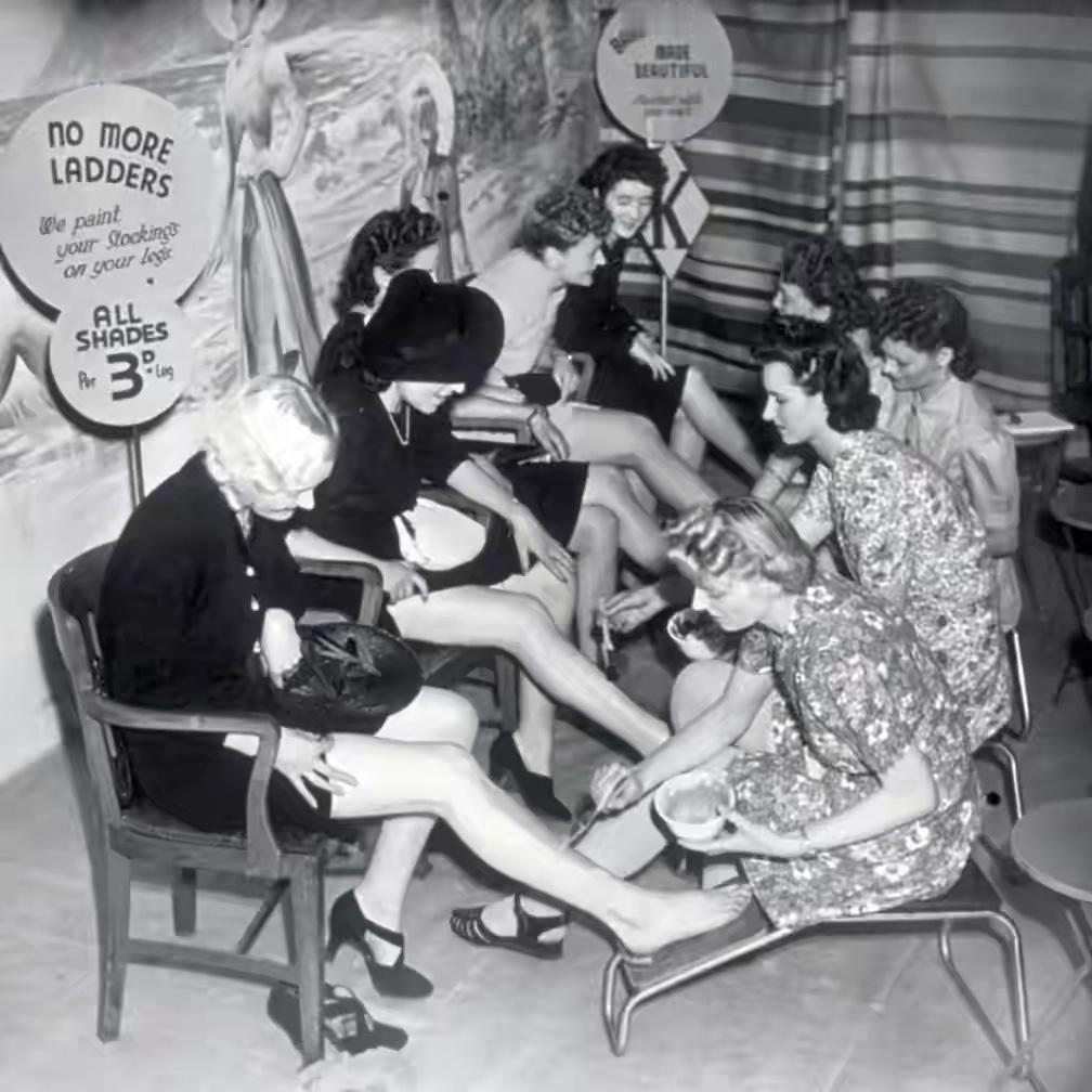 二战时的“画丝袜”,是一场在女性腿上展开的、充满克制又撩人的性感游戏。 这张照片里,女人们围坐在一起,有人手持毛刷,有人端着颜料碗,在彼此裸露的小腿上仔细勾勒出丝袜的轮廓、接缝和袜口。在那个尼龙被全面征用为战争物资的年代,真正的丝袜成了奢侈品,女人们便用这种近乎行为艺术的方式,来维持着体面与性感。 她们用肉色的化妆品打底,再用眉笔或专用颜料画出黑色的袜线,甚至还要在脚踝处点上一点,模仿丝袜滑落的褶皱。这不仅是为了美观,更是一种在战争阴霾下,对女性身份和魅力的倔强守护。当男人们在前线浴血奋战时,女人们则在后方,用这种充满仪式感的方式,维系着日常生活的精致与希望。 这种“画丝袜”的风潮,本质上是一种被压抑的欲望表达。在物资极度匮乏的年代,女性对美的追求从未停止。她们用最廉价的材料,在自己的身体上创造出最撩人的幻象,这既是对战争的无声反抗,也是对人性本能的温柔坚守。 如今再看这张照片,我们看到的不仅是一个时代的时尚奇观,更是一群女性在绝境中,用身体书写的、关于美与尊严的诗篇。