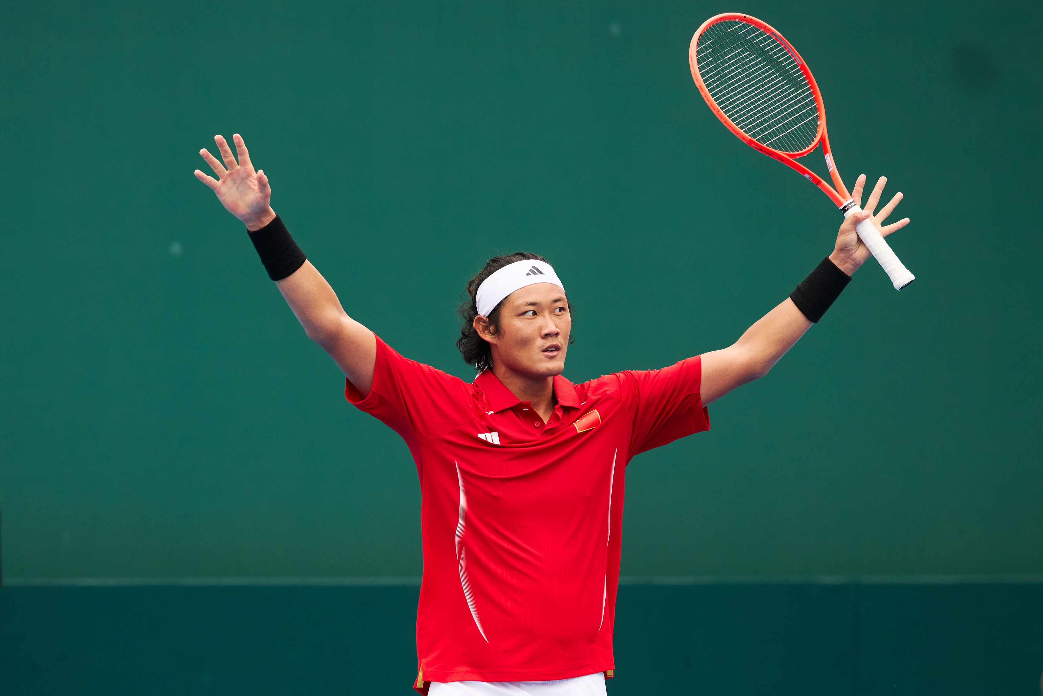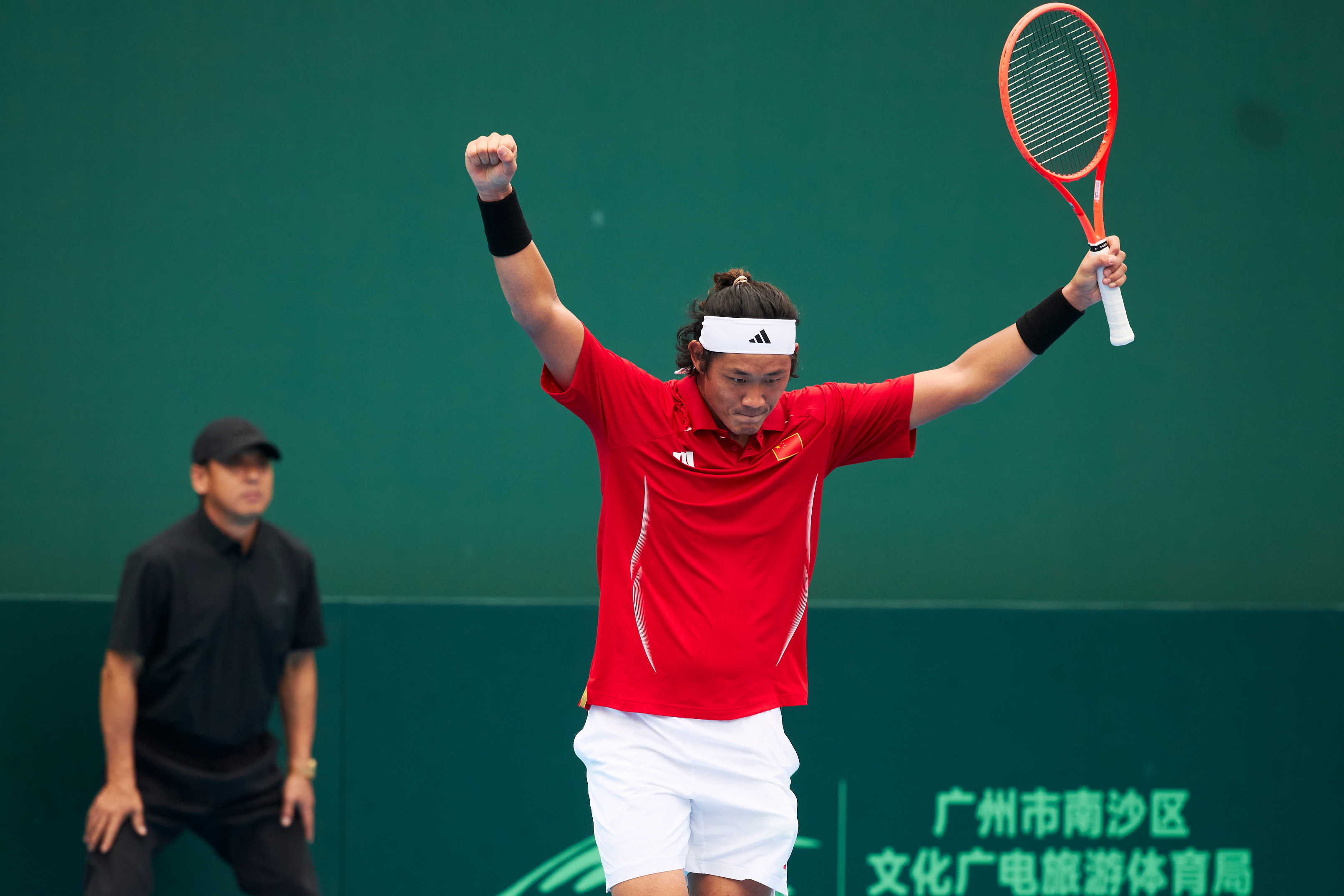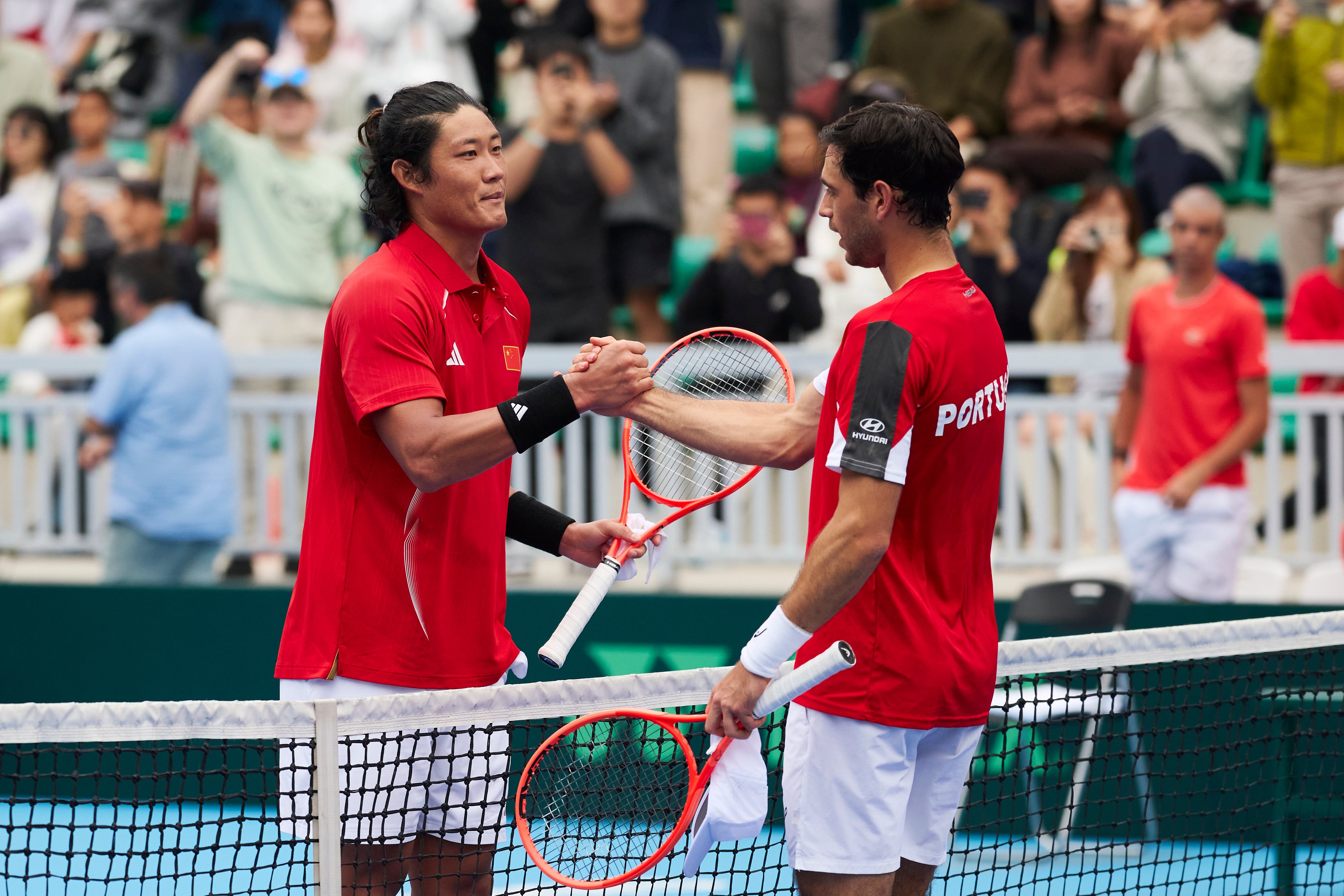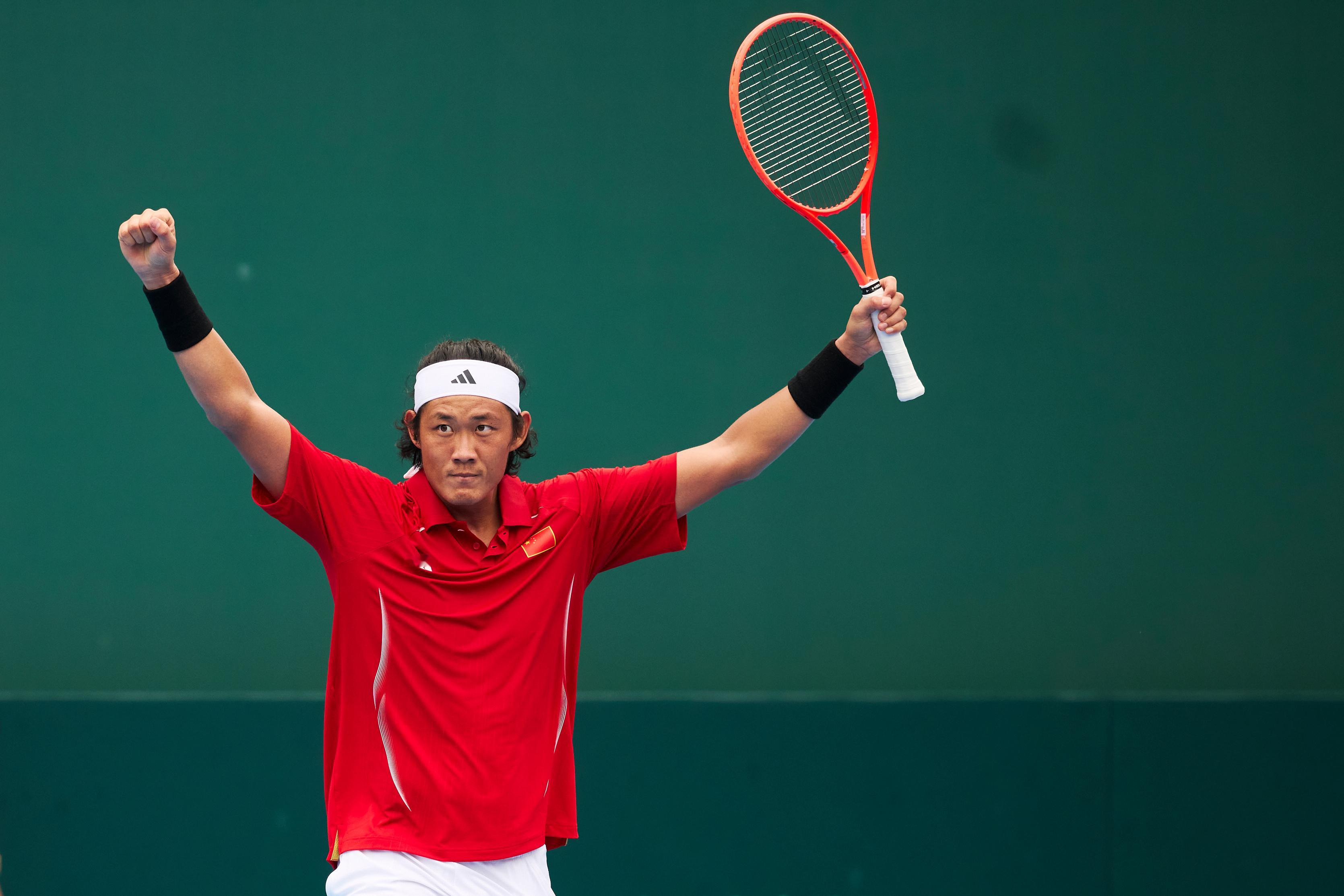 赢了!锁定中国队胜利,张之臻赢下男单赛点中国队晋级戴维斯杯世界一组 时刻,完美!戴维斯杯中国vs葡萄牙 摄影:记者 李建艺拍于:2026年2月7日广州南沙国际网球中心