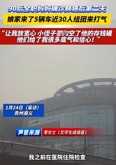 泪目!90后全职妈妈刚确诊肺癌出院,第二天家门口就热闹了——5辆车停得满满当当,近30位娘家人涌了进来,把小小的屋子挤得暖暖的。 “放宽心,钱的事不用愁!”他们一边拉着她的手安慰,一边往她手里塞钱;知道她平时自己带孩子,又特意跟婆家人嘱咐“多帮衬着点”。连平时调皮的小侄子,都踮着脚把存钱罐里的硬币倒出来,奶声奶气地说“姑姑治病用”,还说要亲手织条围巾给她。 那一刻,所有的害怕好像都轻了。原来生病时最硬的靠山,不是药有多灵,是亲人齐刷刷站在你身后,用爱给你搭起的底气。 谁还没被家人这样“撑腰”过?评论区聊聊那些让你瞬间有了勇气的瞬间,为这份沉甸甸的亲情点个赞,转发让更多人看看,家人在,啥坎儿都能过。 人间温暖