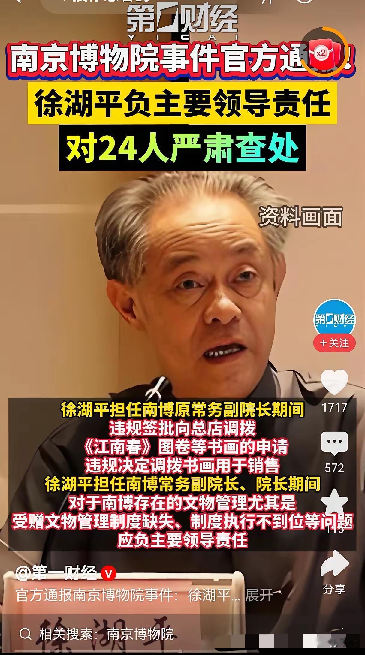 南京博物院事件出调查结果了,粗略看了一下通报,大概意思就是,20多人被处理,已属顶格处理,该事件不宜再扩大了。经过这么一折腾,南京博物院里还有多少真迹,恐怕会很多人跟我一样,心里大大的问号? 可越是这样,普通民众心里的疑虑反而越重。经过这一轮舆论发酵与细节曝光,大家最关心的早已不只是谁被处理、处理多重,而是南京博物院馆藏文物的真实安全状况。 作为国内顶级博物馆、无数游客心中的文化殿堂,南博承载着历史传承与公众信任,如今曝出管理漏洞、文物流转不规范等问题,直接击穿了大家对文博机构专业性与安全性的认知。 通报里提到制度缺失、管理混乱、执行不力等问题,字字戳心。这些问题不是一天两天形成,也不是个别人员的偶然行为,而是长期积累、层层失守的结果。 当馆藏文物的出入库、保管、流转都出现漏洞,当受赠文物被违规调拨、甚至流向市场,公众自然会忍不住追问:馆内到底还有多少真迹?哪些文物还在安全保管?哪些环节还存在看不见的风险?这些疑问,不是一句“顶格处理、不宜扩大”就能轻易打消的。 文博机构是文明的守护者,文物是不可再生的国家瑰宝,每一件书画、每一件器物背后,都是历史的沉淀与民族的记忆。 公众愿意相信官方调查的严肃性,也支持对失职人员严肃追责,但更期待透明、全面、可核查的真相。处理责任人只是第一步,更重要的是全面盘点馆藏、公开核查结果、补上制度漏洞、接受社会监督,用实实在在的行动重建信任。 顶格处理是态度,公开透明才是答案。希望南京博物院能真正吸取教训,以最严谨的管理、最透明的信息,回应所有人的关切,让国宝真正得到守护,让公众不再为文物安全悬着一颗心。 南京博物院 南京博物院事件 文博安全 文物保护