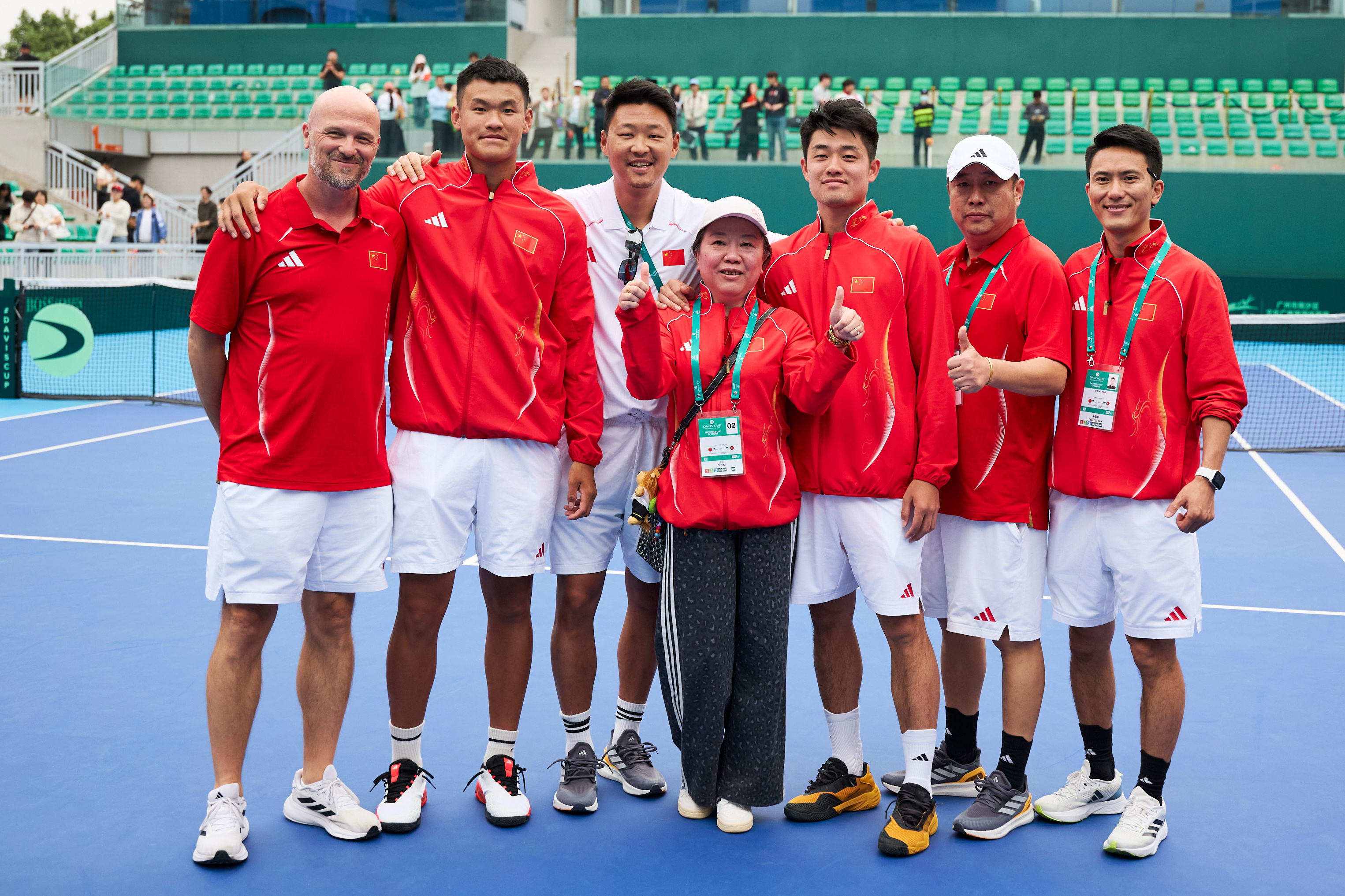 摄影:记者 李建艺中国队晋级戴维斯杯世界一组