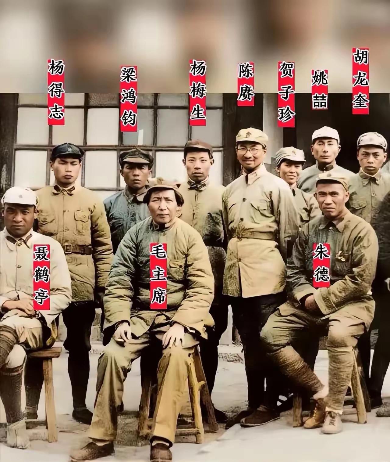 这张照片里,毛主席和朱老总端坐中央,身边围坐着杨得志、陈赓、贺子珍等一众开国元勋,每一张面孔背后,都是一段改写中国命运的传奇。 这张照片拍摄于1937年的延安,正是红军长征胜利后不久,抗日烽火初燃的关键节点。照片中的每个人,都经历了九死一生的考验:毛主席运筹帷幄,朱老总身经百战,陈赓大将的笑容里藏着百战余生的从容,贺子珍则在硝烟中守护着革命的火种。他们身上的军装洗得发白,脚下的布鞋沾满征尘,却眼神坚定,仿佛能穿透历史的迷雾,看到新中国的曙光。 这不是一次普通的合影,而是一群理想主义者在绝境中并肩前行的见证。他们中有人后来成为开国元帅、大将,有人则在随后的战斗中壮烈牺牲。但在这一刻,他们都是为了同一个信仰而奋斗的战友。 如今再看这张照片,我们看到的不仅是历史的定格,更是一种精神的传承。那是在最黑暗的时刻,依然相信光明的力量;是在最艰难的岁月里,依然并肩前行的勇气。正是这些人的坚守与牺牲,才换来了我们今天的和平与安宁。