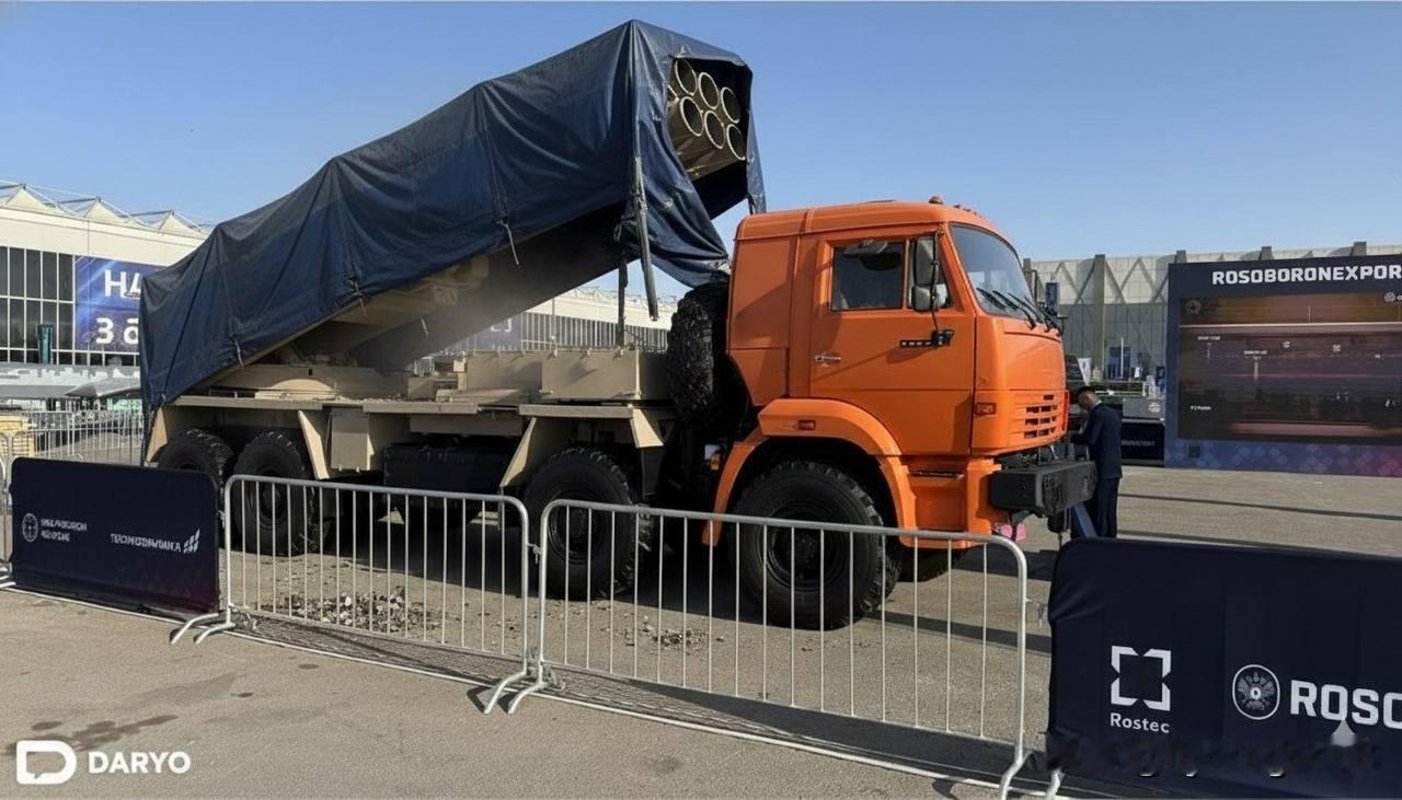 🇷🇺 俄罗斯新型300毫米多管火箭炮系统“萨尔玛”(Sarma)在沙特阿拉伯举行的军事展览会上亮相。该系统已在特种作战区域投入使用。 该系统的一大亮点在于其适应实战环境的能力,而非仅仅用于展示。 “萨尔玛”可以伪装成一辆普通卡车。