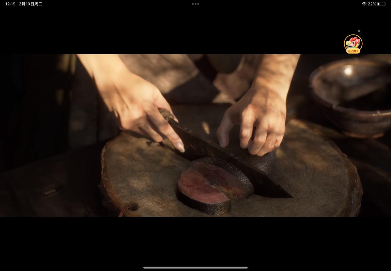 怎么片鱼,怎么切肉、怎么切黄瓜切藕片,这个刀工还是很不错。这应该是用实体演变出来的,就是说有一个人是专门来切菜,别人把这个东西用电脑还原出来。(如果这个女的是钟馗的妹妹,那就符合原著小说里面(有关妹妹给哥哥做了一顿饭、我记得好像原著小说里面就有妹妹给钟馗做饭、