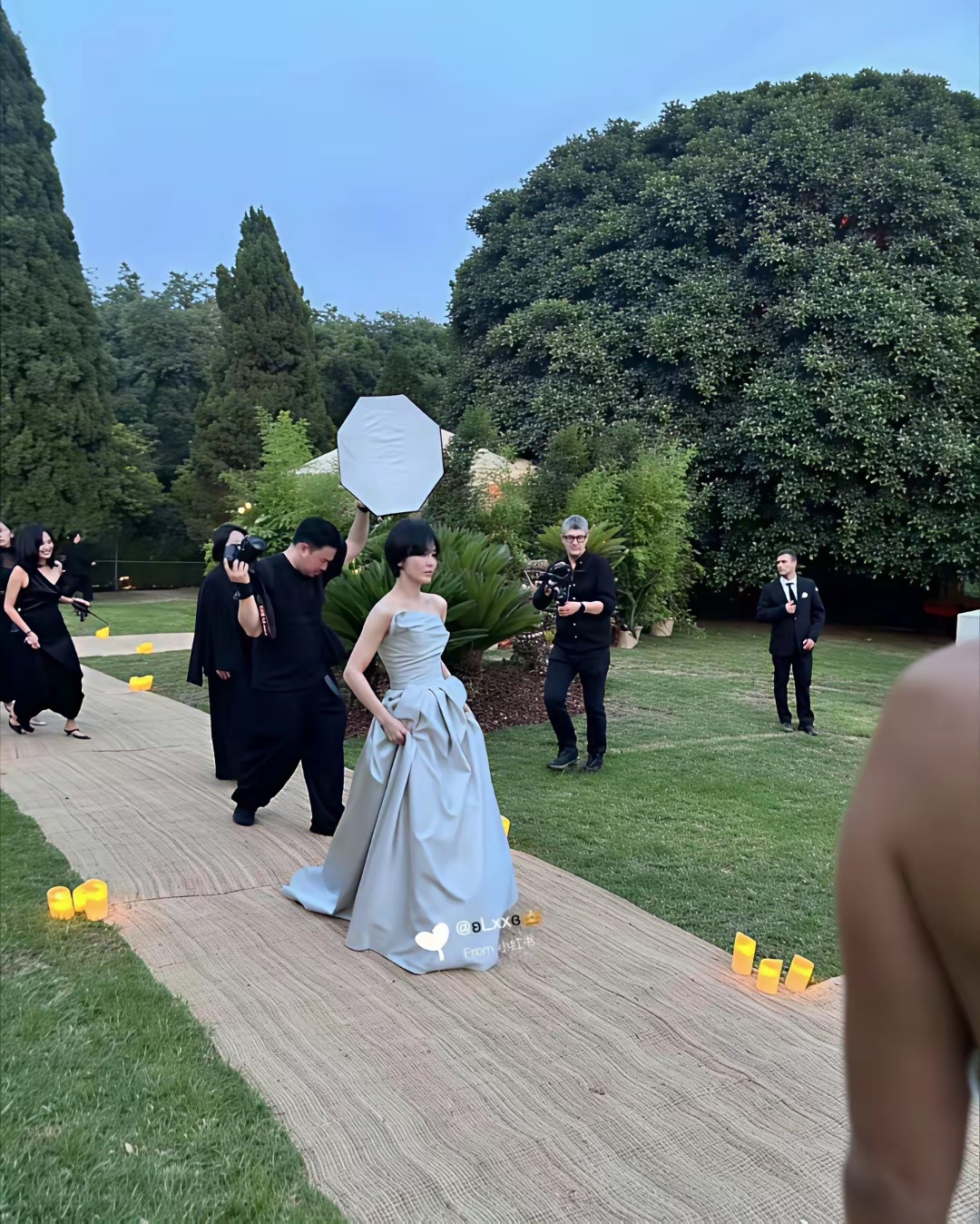 张天爱跟素人合影,胯真的好宽,大宅院似的