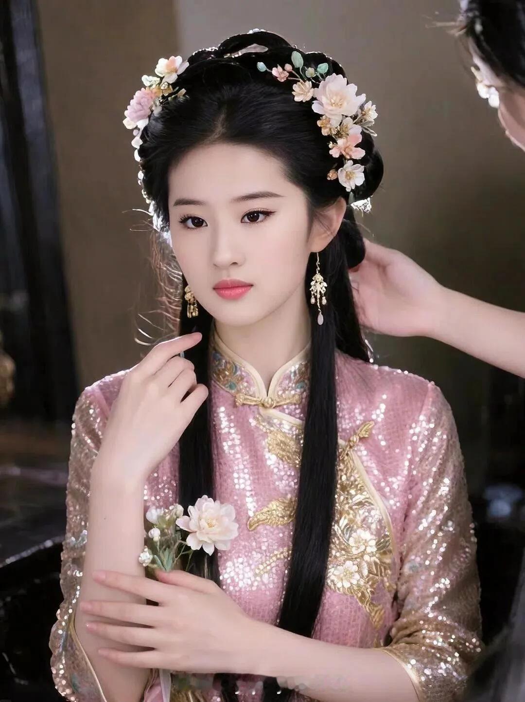 复古旗袍美人,红唇与珍珠耳环相映成趣,优雅动人。
