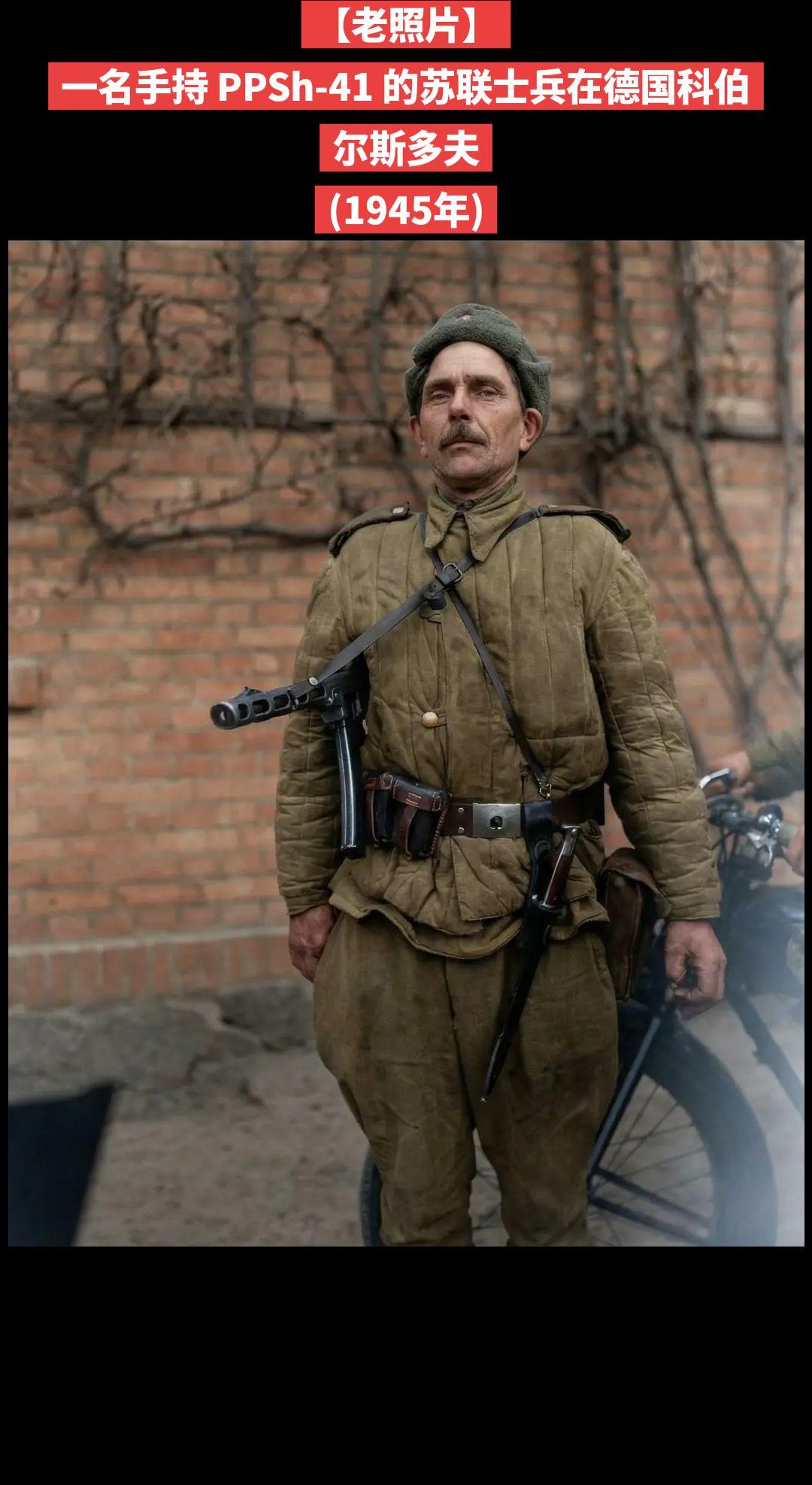 【老照片】一名手持 PPSh-41 的苏联士兵在德国科伯尔斯多夫—— 1945