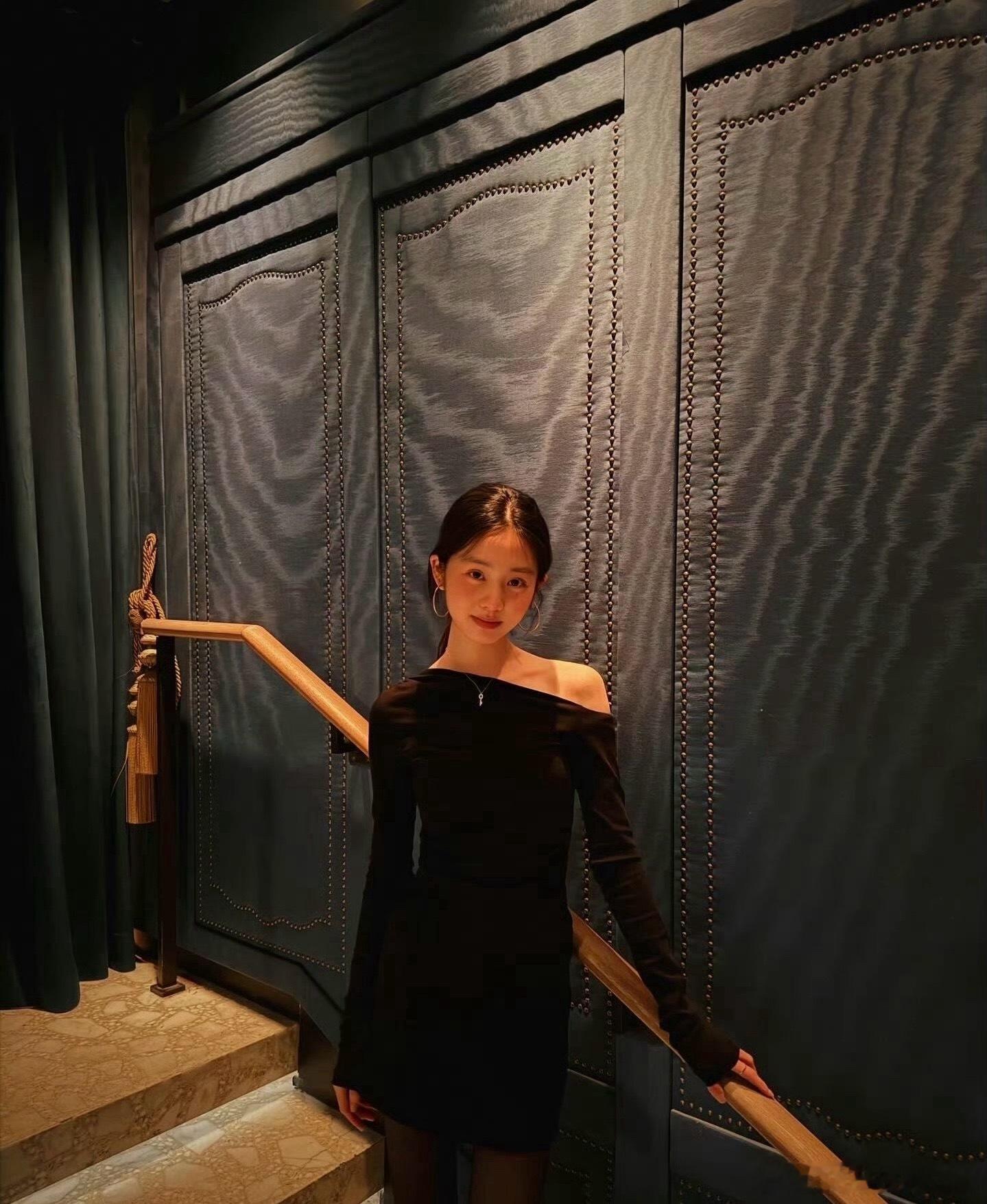黄多多戴大耳环穿黑色斜肩裙,活脱脱的小孙莉既视感。她真的好瘦啊,骨架子窄窄的,很单薄的一片。