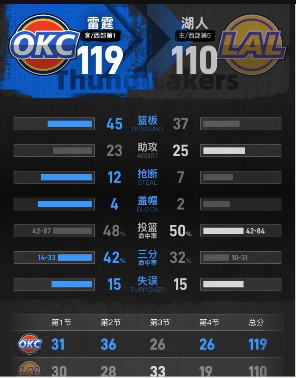 未来已经不是在敲门了,是雷霆这群小子直接踹门进来了!把“夕阳红”湖人砸得晕头转向