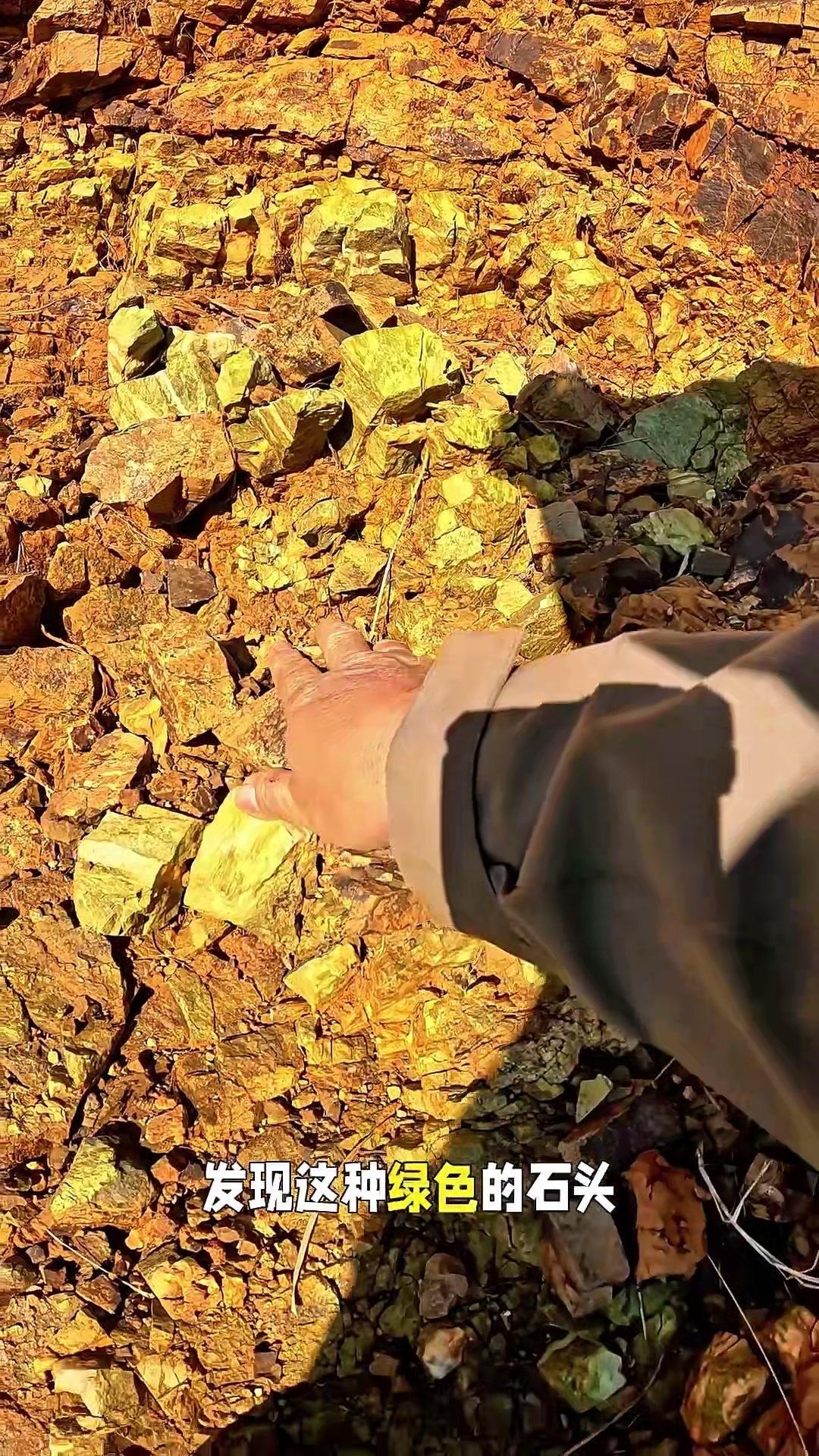 山里挖到神秘绿石头!在老家山里散步,意外发现脚边有层绿色石头,颜色像玉石一样透亮,表面还滑溜溜的。本来以为是松石,走近摸了摸才发现不是,质地更像普通的绿石头,只有薄薄一层,别处都没有这种颜色。 这石头看着挺特别的,有懂行的朋友知道这是什么矿吗?评论区帮我看看!