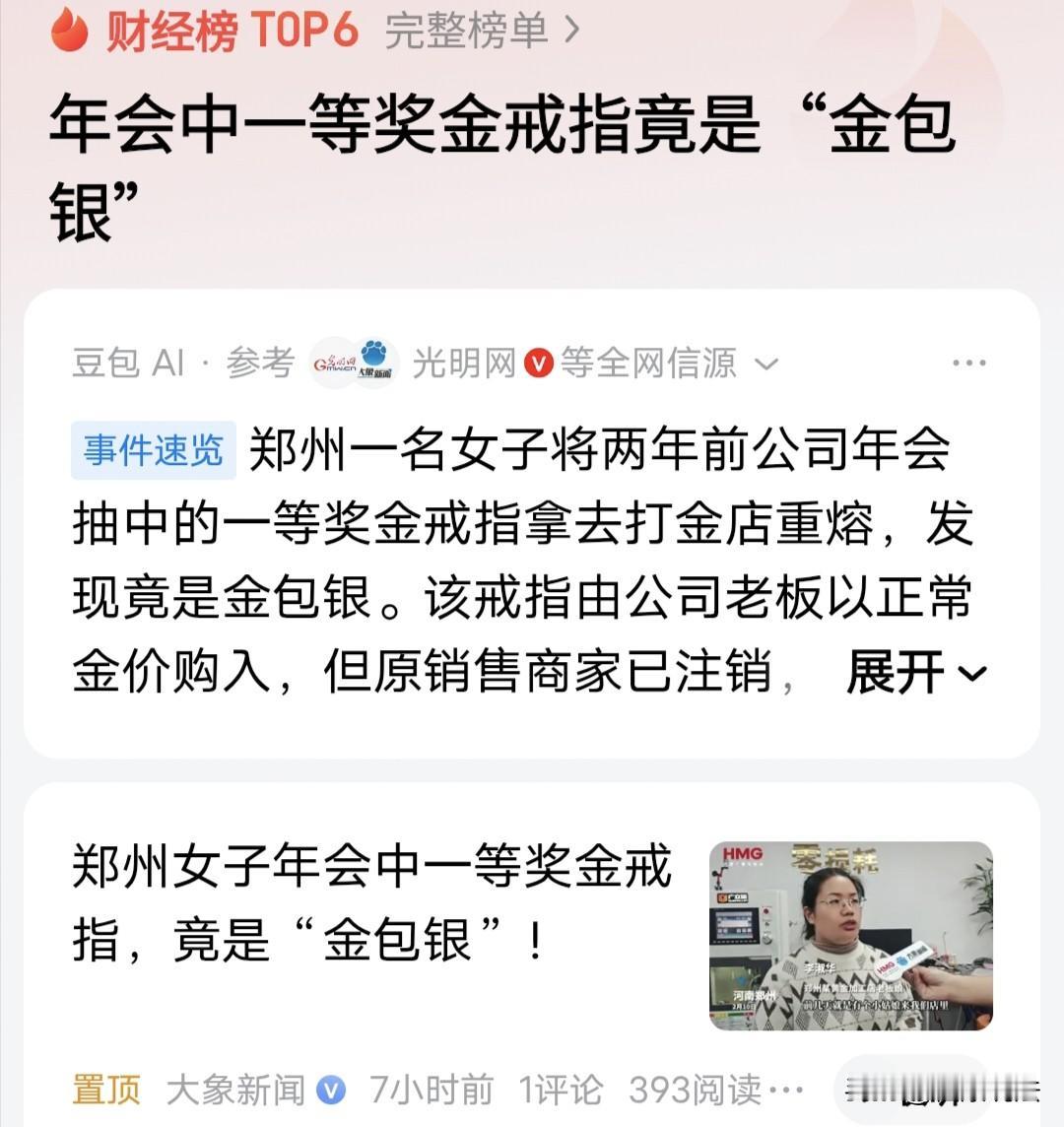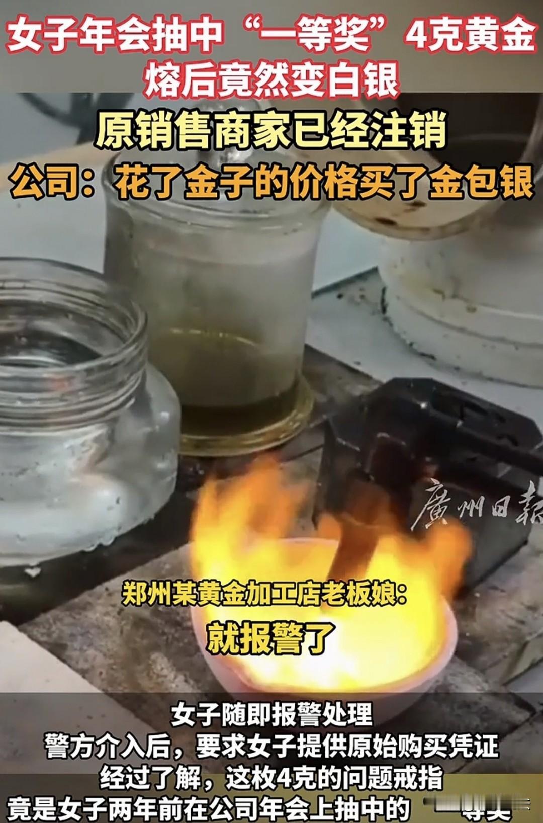 憋屈!河南郑州,女子拿一个4克、一个2.96克的金戒指,到金店重新打造,谁料,那4克金戒指竟是“金包银”,女子气到报警,原来,这4克金戒指是女子2年前在公司年会抽中的一等奖,警方让她提供原始凭证,女子的老板知道后,二话不说,发来付款截图,金店老板娘一看忍不住感叹:你老板花了金子的价格,买了一个金包银!女子去联系商家,结果让她更郁闷了! 2月8日,一家金店里,原本平静的氛围被一阵惊呼打破。 一年轻女子正满心期待地等着自己两枚旧戒指重焕新生,可当店家把熔炼后的金属呈现在她眼前时,她瞬间瞪大了眼睛,嘴巴也张得老大——有一个金戒指竟变成了白色,活脱脱像变了一场“魔术”,可这“魔术”却让女子心里直发慌。 老板娘经验丰富,一下子就看出了门道,赶忙给小李说:“这是金包银的现象”。 原来啊,这金包银的造假手法,就是在银或者其他廉价金属外面裹上一层黄金,如果光看表面,根本瞧不出啥问题,所以说,金子都有“表里不一”的时候。 小李一听,脑袋“嗡”的一下就大了,整个人都懵了。 她怎么也没想到,自己拿来重新打造的两枚戒指,居然藏着这么大的猫腻。 她这两枚戒指,一枚约4克,另一枚约2.96克,总重约7克。 不过,这枚4克的戒指可有来历,那是两年前,她在公司年会上得到的一等奖呢。 当时全公司那么多人,就她一个人中了这个奖,当时可给她激动坏了,就跟中了超级大奖似的,同事们都羡慕得两眼放光,小李自己也乐开了花,觉得自己的运气简直好到爆棚,走路都带风。 谁曾想,她把金子给金店老板娘检验的时候,出了问题。 老板娘一开始烧的时候,金戒指一点颜色都没变,然后,用仪器检测表面的纯度也是足金,可谁能想到把两个金戒指往一块熔炼,那4克的金戒指它里面包的银? 小李又气又急,感觉自己就像被当头浇了一盆冷水,心里那叫一个憋屈。她越想越不对劲,这不明摆着被人耍了吗?于是,她毫不犹豫地选择了报警。 警方介入后,要求小李提供原始购买凭证。这一查,可真是让人哭笑不得。 问题出在那枚中奖得到的4克金戒指上。 小李和老板联系后,说了这个情况,需要他帮忙。 要说,她公司老板也挺实在,得知情况后,二话不说提供了当时的付款截图,上面显示购买价格是2196元。 照当时市场金价算,这价格和正常金饰价格差不多,老板没想着贪那点小便宜。 金店老板娘都忍不住感叹:“你老板也是倒霉,花了金子的价格却买了一个金包银,真是赔了夫人又折兵。” 可更让小李无奈的是,当她试图联系原销售商家维权的时候,却发现那商家已经注销了,就像人间蒸发了一样,消失得无影无踪。这下可好,维权之路变得困难重重,小李心里那个郁闷啊,就像吃了黄连一样苦。 其实,这事儿真挺闹心。年会抽奖本是公司给员工的福利,女子幸运抽中“一等奖”,满心欢喜,结果却是个“金包银”,这落差太大了。 公司老板也挺冤,花了纯金的钱却买到假货,也是挺无奈的。 而商家这种造假行为太不地道,为赚钱不择手段,损害消费者利益。 此事,商家或构成欺诈。 根据《消费者权益保护法》第55条规定,经营者提供商品或服务有欺诈行为的,应当按照消费者的要求增加赔偿其受到的损失,增加赔偿的金额为消费者购买商品价款或者接受服务费用的三倍。(也就是常说的“退一赔三”)。 第一,这种“金包银”不是工艺失误,而是典型的蓄意造假。商家把银子裹上金皮,当成足金按2196元的高价卖给公司老板。 老板付的是真金钱,商家给的是“夹心饼干”(金包银),这就是典型的故意隐瞒真实情况,诱导别人花冤枉钱。 第二,商家利用普通消费者甚至光谱仪检测表面的局限性,把低价的银子包装成高价金子卖出,这在法律认定中就是采取了虚假手段误导消费。 虽然,公司老板是直接买家,女子是受赠人,但商品本身的欺诈属性不改变。 最憋屈的是,现在商家已经注销了。 法律上虽然支持维权,但在现实中,如果找不到背后的实际经营者,这笔“退一赔三”的赔偿款恐怕很难落到口袋里,确实让人无奈啊!