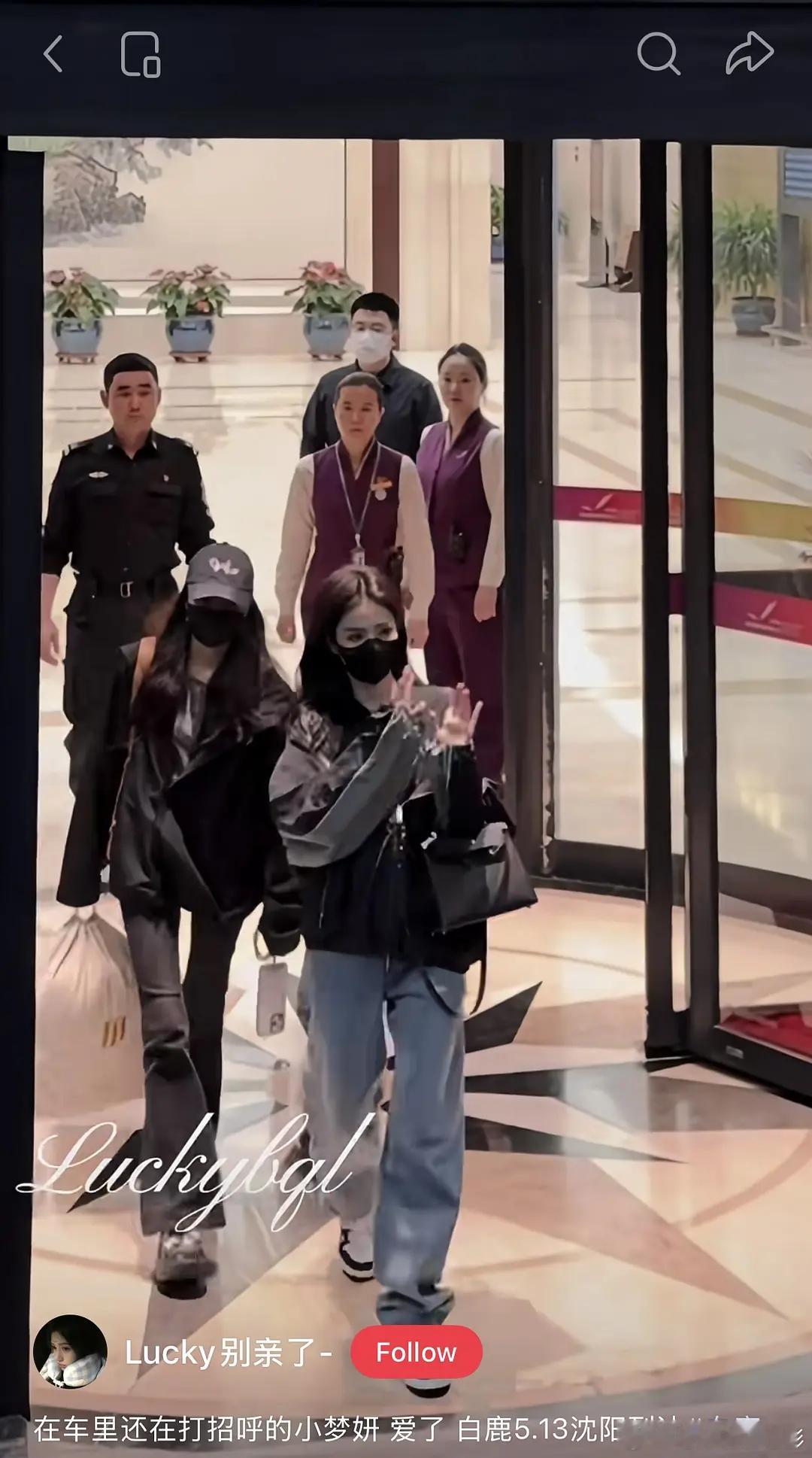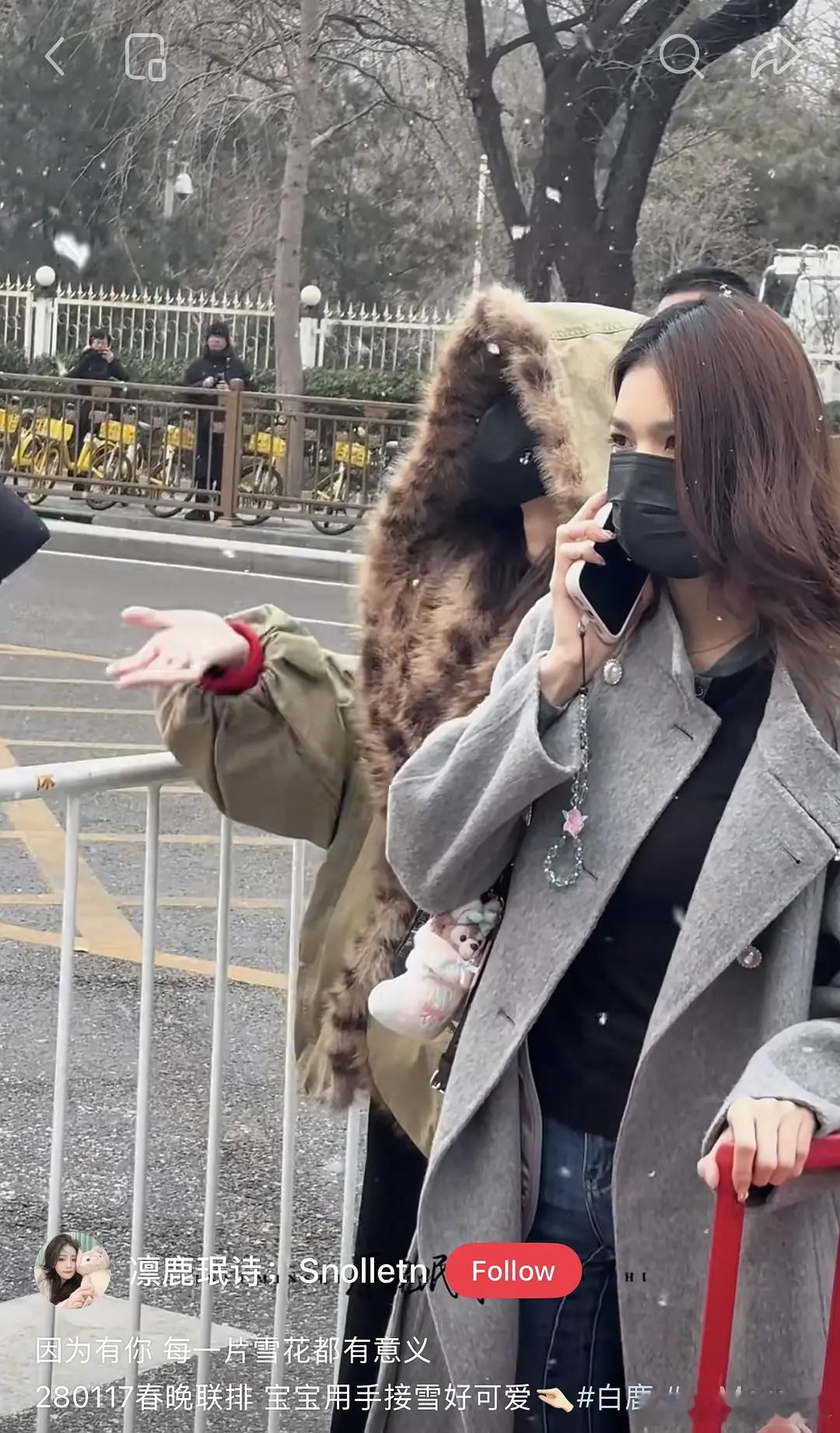 张天爱跟素人合影,胯真的好宽,大宅院似的