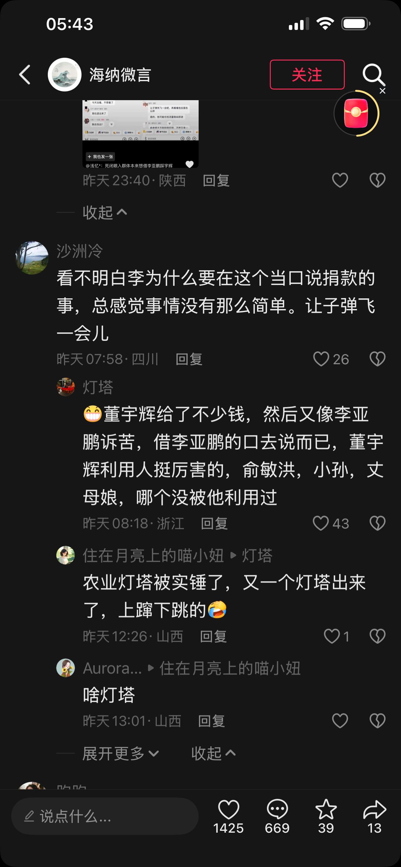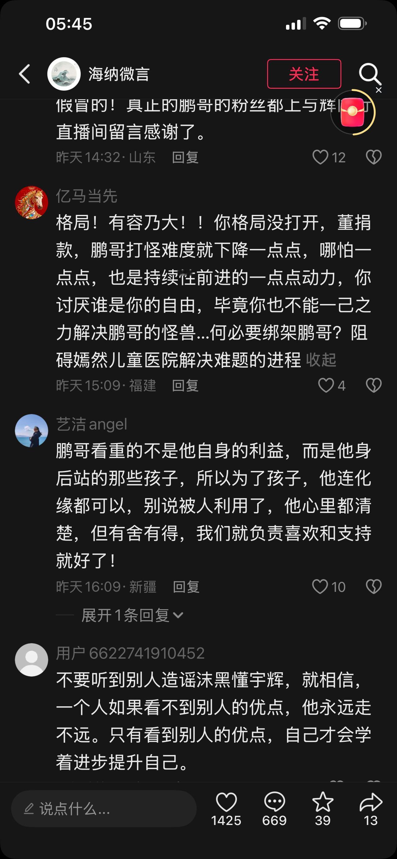 董宇辉太难了, 不,应该说是真正想做点事的人太难了。 捐款信息没别公开他被骂, 说他为富不仁。 捐款晚了被骂, 说他是怕被骂才捐款的。 捐少了被骂, 骂他小气。 捐多了还是会被骂, 说他赚的太多, 看看出手这么大方, 肯定是韭菜割的太多。 有钱,捐这点算啥。 有人说他捐款是为了“洗白”, 别有所图。 还有人说他捐款是为了抵税…… 连李亚鹏实事求公开宇辉捐款的信息, 感谢一些宇辉都要被骂, 甚至脱粉。 这些人是李亚鹏的粉丝吗? 我表示严重怀疑。 也许是, 因为任何一个粉丝去群体都有一些这种没有边界感的粉丝, 他们管天管地管空气, 喜欢了谁就要控制对方的言行。 也许不是, 因为最近网络太混乱, 牛鬼蛇神太多, 浑水摸鱼的水军太多。 他们别有用心, 到处挑拨离间, 所以这些人是谁的粉丝, 真假难辨。 这个社会怎么了? 真金白银做公益的被骂, 收到善款发出感谢也要被骂。 一群无所事事一毛不拔的人天天评价指责别人, 然后去臆想各种“剧情”。 于是乎觉得自己又真相了, 佩服自己是个“大聪明”? 还是觉得自己又升级了, 成为了“正义使者”! 他们说对李亚鹏失望了, 呵呵呵, 你们高看了自己。 你算个嘚啊? 还是先问问你老婆孩子对你今年的收入满意吗? 你父母对你的孝心失望没? 不要说你是李亚鹏的粉丝, 这些年李亚鹏举步维艰的时候你们在哪里? 他欠医院房租的时候你们在哪里? 往后嫣然基金会和医院还需要很多资金, 你们准备如何去支持? 贡献多少? 你们可以不喜欢董宇辉, 这是你们的自由, 无可厚非。 但是不应该质疑他做公益这件事, 因为他是拿真金白银支持慈善公益, 他的捐款是直接打到了医院, 而不是嫣然基金会。 去百度一下吧, 直接打款医院的善款能抵税吗? 连这点都不懂, 还巴巴个啥? 老话说“君子论迹不论心, 论心无完人。” 不要去拿你的认知去臆想别人的目的, 因为你的思想层次够不上他们大格局。 不管是坚持不懈为公益事业奋斗的李亚鹏, 还是真金白银支持公益慈善的董宇辉, 都是值得肯定的。 这个世界如果多一些他们这样的人, 是不是会更美好? 这个世界很大, 是多元化的。 容纳得下优秀的李亚鹏, 也应该可以容纳下优秀的董宇辉。 他们在各自的领域发挥自己特长, 为这个世界的美好添砖加瓦。 需要有人坚持去做公益, 但是也需要无数个董宇辉真金白银支持, 慈善公益没有资金来源, 一切都只是一个口号。 “富则达济天下, 穷则自善其身。” 董宇辉在有能力了做公益, 而你们可以自善其身, 没必要各种质疑。 人可以穷, 那是运气和实力的问题。 但是不可以“恶”。 你们如果真的质疑董宇辉捐款的目的, 那不如你们就众筹, 把董宇辉的捐款金额凑齐捐给嫣然基金 甚至更多, 欢迎你们为慈善公益发光发热! 散会! 董宇辉 与辉同行
