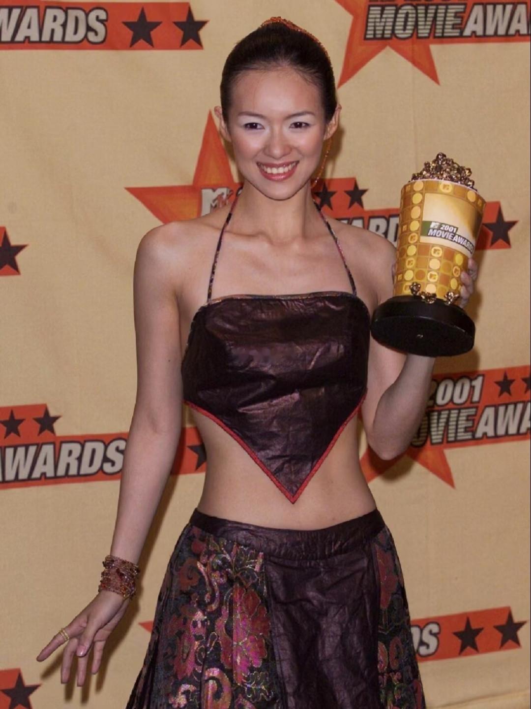 章子怡97年穿肚兜上镜,学生时期的她就把开放走到前沿了。