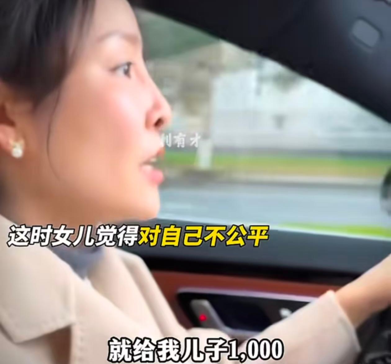 这个女儿真虎啊! 视频中,这位女儿生气地质问母亲,为什么给弟弟孩子拿2000而给自己孩子只拿1000,妈妈理直气壮地说那是自己的孙子啊,2万都可以拿,你想要多一点就去问自己婆婆拿! 咋一听觉得是这位妈妈一碗水没端平,伤了女儿的心,哪知道妈妈又说,再说你弟只有一个孩子,而你有两个,两家总金额是一样的,从视频中听得出,妈妈平时还要贴补女儿生活费,而女儿说这不是妈妈应该的吗?那一瞬间,妈妈明显眼神一愣,气的说不出一句话! 估计这个女儿在婆家捞不到好处,一个劲儿的嚯嚯娘家! 这个女儿还把这段视频发在网上,估计是让网友为自己评评理,哪知道回旋镖扎向自己。 大家都不买账,一致认为妈妈处理没问题,外孙长大后是当亲戚来处,想来就来不来也没办法,而孙子不一样,是一个家的传承。 其实视频中的妈妈已经够好的,极力做到公平,只是女儿想要的够多!