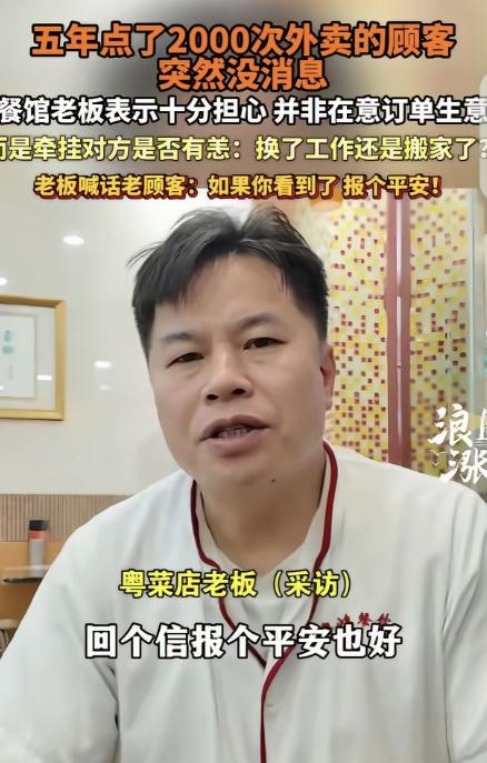 近日,广东佛山,一男子开了家粤菜馆,有个顾客5年点了2000次外卖,突然1年多都没下单,男子很是牵肠挂肚,他不是想挣这个顾客的钱,而是担心对方的安危,不知道是换工作了还是搬家了,男子喊话:如果你看到了,报个平安! 老板开这家粤菜馆有些年头了,靠的就是地道的口味和实在的分量,回头客不少,但从来没有一个顾客,能像这个人一样,五年如一日地认准他家,哪怕是节假日,哪怕是酷暑寒冬,那个熟悉的订单总会准时出现在后台。 时间久了,后厨的伙计不用看备注,只要看到那个熟悉的地址跳出来,就知道该做什么菜,该多放什么、少放什么,甚至会下意识地多给一勺菜、添一盅热汤,不用老板特意交代,也不用额外收钱,就像是在给自家熟人做饭一样。 老板也渐渐养成了习惯,每次看到这个订单,都会多叮嘱一句后厨,菜要做的软烂一点,汤要热一点,他总觉得,能每天靠外卖解决吃饭的人,大概率是一个人在外打拼,日子过得不算太容易,能多关照一点,就多关照一点。 他从来没有想过要从这个顾客身上多挣多少钱,甚至有时候食材涨价,这份订单几乎没什么利润,他也依旧按时按点做好,安安稳稳送到顾客手上。 这份维持了五年的默契,没人觉得会突然中断,店里的伙计还经常打趣,说等哪天这个顾客来店里吃饭,一定要好好招待,看看是谁这么认可他家的味道。 可谁也没料到,这份日复一日的陪伴,会在一年多前毫无征兆地按下暂停键。起初的一个星期,老板没太在意,只当是顾客临时出门,或者换了口味,偶尔想吃点别的,毕竟就算再爱吃的菜,也难免有吃腻的时候。 可一个星期过去,两个星期过去,那个熟悉的订单,依旧没有出现,后台的记录,停留在了一年多前的那一天,再也没有更新过。 这时候,老板心里开始有些发慌,他下意识地翻看后台,一遍又一遍确认那个账号,没有注销,没有变更地址,可就是再也没有下过单,就像是突然从这座城市消失了一样。 他开始忍不住胡思乱想,一会儿琢磨着,是不是顾客换工作了,离开了佛山,所以没办法再点他家的外卖;一会儿又担心,是不是顾客搬家了,换了新的住址,忘了这家他吃了五年的粤菜馆。 可越想,他心里越不安,最让他放不下的,是担心顾客是不是遇到了什么难处,是不是身体出了状况,所以才没办法再点外卖,没办法再按时吃饭。 他甚至还反省自己,是不是哪一次菜没做好,是不是哪一次送餐晚了,让顾客不满意了,所以顾客才再也不来光顾,可翻遍了所有的订单评价,那个账号从来没有给过差评,甚至连一次投诉都没有,每次的评价都很简单,大多是“味道很好”“分量很足”。 店里的伙计看到老板整日心神不宁,也曾劝过他,说可能就是顾客换了地方,没必要这么担心,少一个顾客,店里也不会有太大影响,可老板却摇了摇头,他说自己担心的从来不是生意,不是少了这一个订单,而是担心那个每天靠外卖吃饭的人,是不是真的平安。 日子一天天过去,一年多的时间里,老板从来没有放弃过惦记,他依旧每天翻看后台,依旧会在做饭的时候,下意识地多做一份清淡的菜,仿佛那个熟悉的订单,下一秒就会出现。 他也曾试着通过外卖平台联系顾客,可平台有规定,不能随意泄露顾客的隐私,他找不到任何联系方式,只能眼睁睁地惦记着,却无能为力。 眼看着年关越来越近,家家户户都忙着团圆,老板心里的牵挂也越来越浓,他实在放心不下,最终决定拍一段视频,在社交平台公开喊话,不求顾客再回来下单,不求能有什么回报,只求对方能看到视频,能简单报个平安。 视频发出去之后,很快就引起了网友的关注,大家纷纷被老板的暖心举动打动,有人猜测顾客可能是结婚了,有了人做饭,再也不用靠外卖。 有人说顾客可能是换了更好的工作,生活变好了,有时间自己做饭了;还有人分享自己的经历,说自己也有常年光顾的餐馆,老板也会记住自己的喜好,那种被惦记的感觉,特别温暖。 直到现在,那个消失了一年多的顾客,依旧没有出现,也没有给老板报平安,老板依旧守着自己的粤菜馆,每天按时备菜、接单,依旧会下意识地翻看后台,惦记着那个素未谋面的老顾客。 其实这份牵挂,无关利益,无关生意,只是一个普通人对另一个普通人最朴素的关心,是快节奏都市里,最动人的人间烟火。 那么大家觉得,这个消失的顾客,到底是因为什么才不再下单?欢迎在评论区留言讨论,说说你的看法。