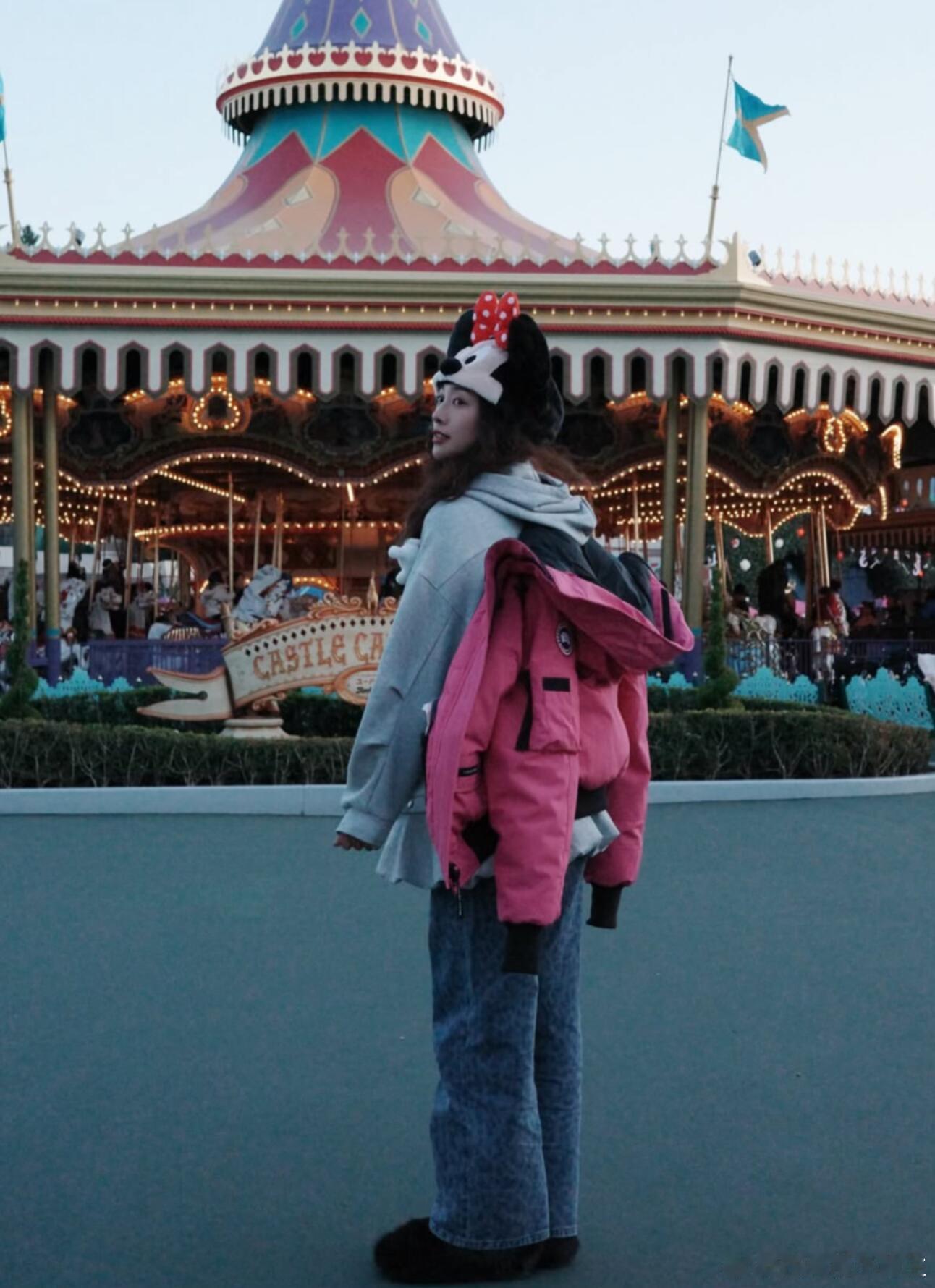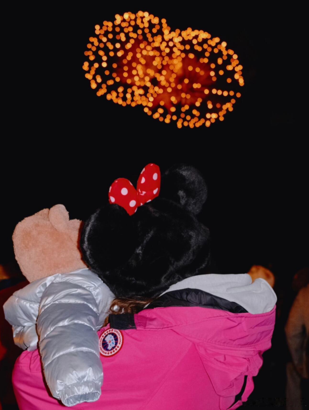 鬼鬼带女儿去迪士尼鬼鬼带女儿迪士尼看烟花鬼鬼带女儿去迪士尼,母女俩同框看烟火好