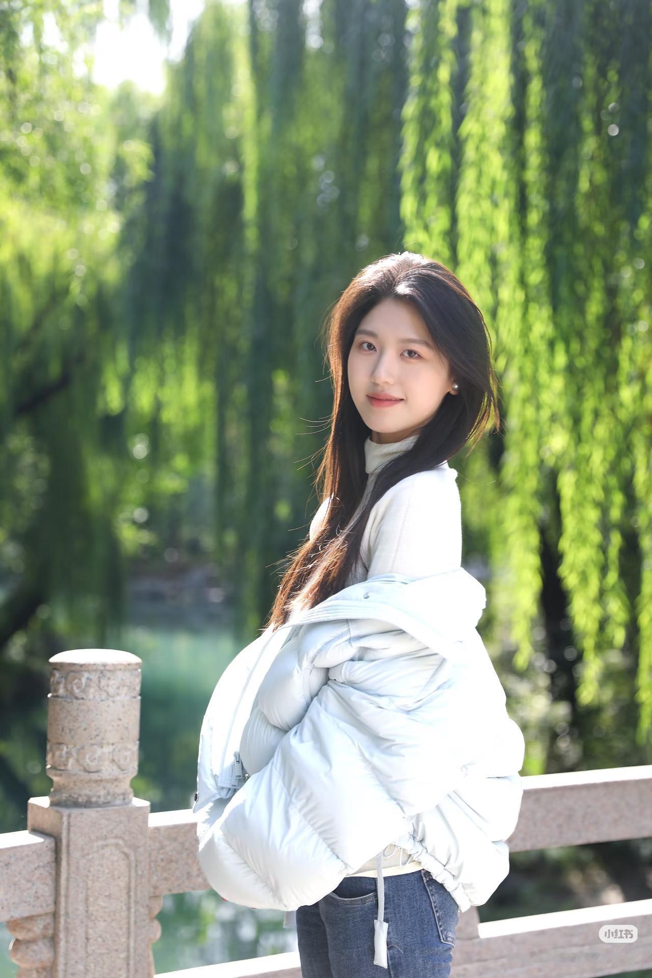 温柔冬日,白衣少女,静谧竹林,时光静好。