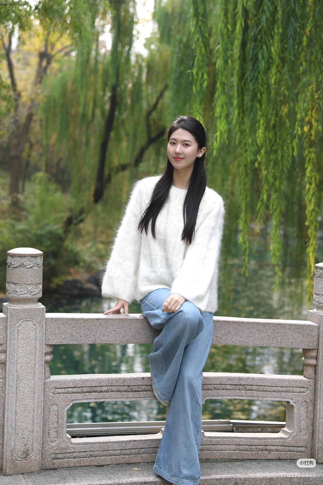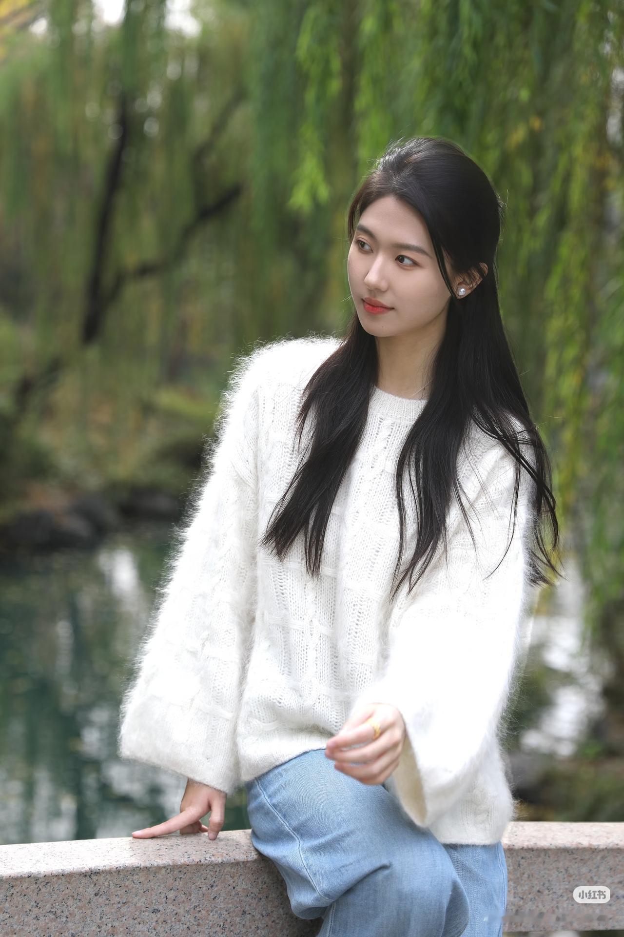 温柔冬日,白衣少女,静谧竹林,时光静好。