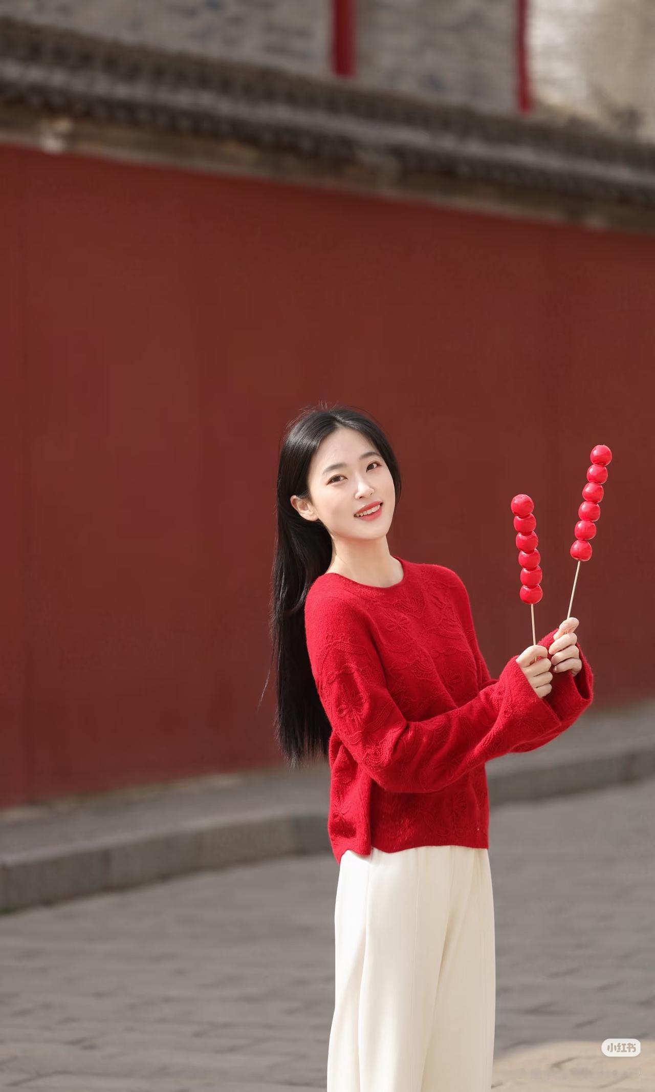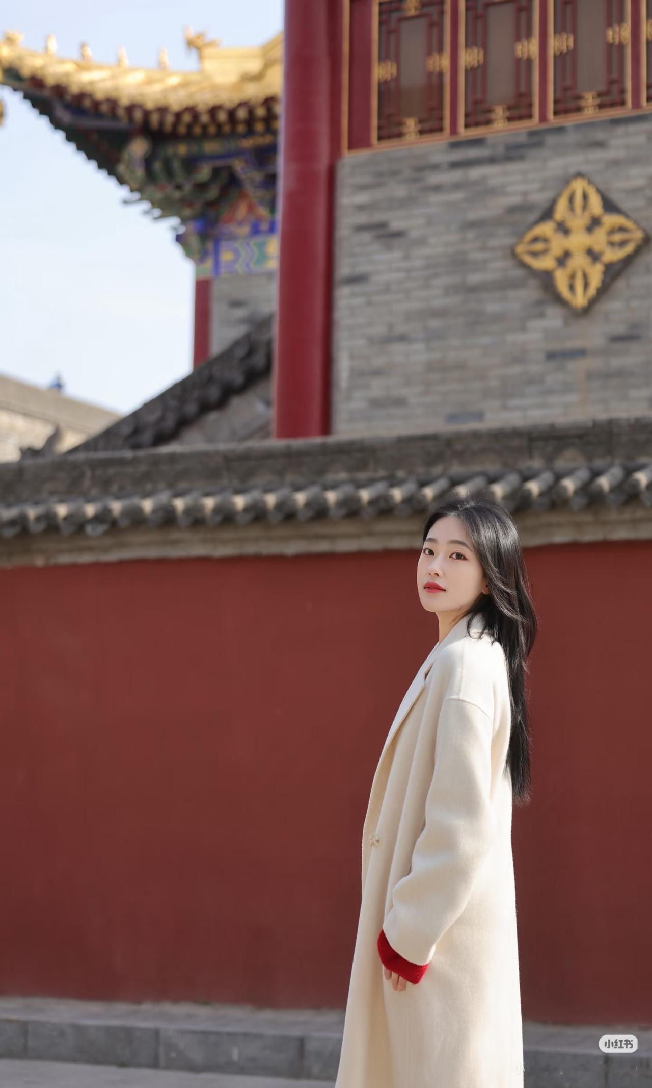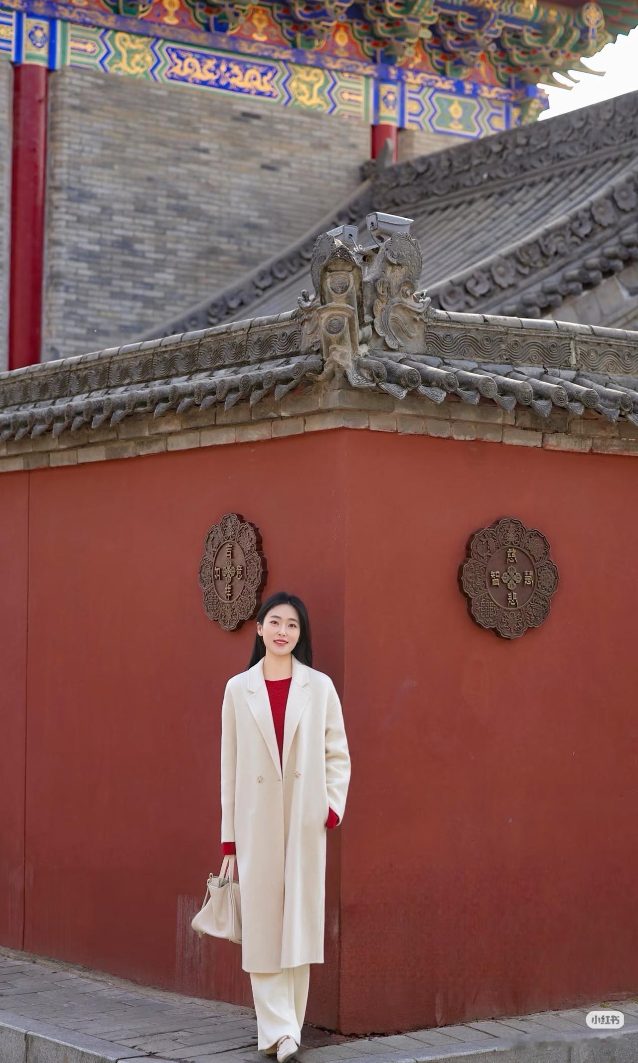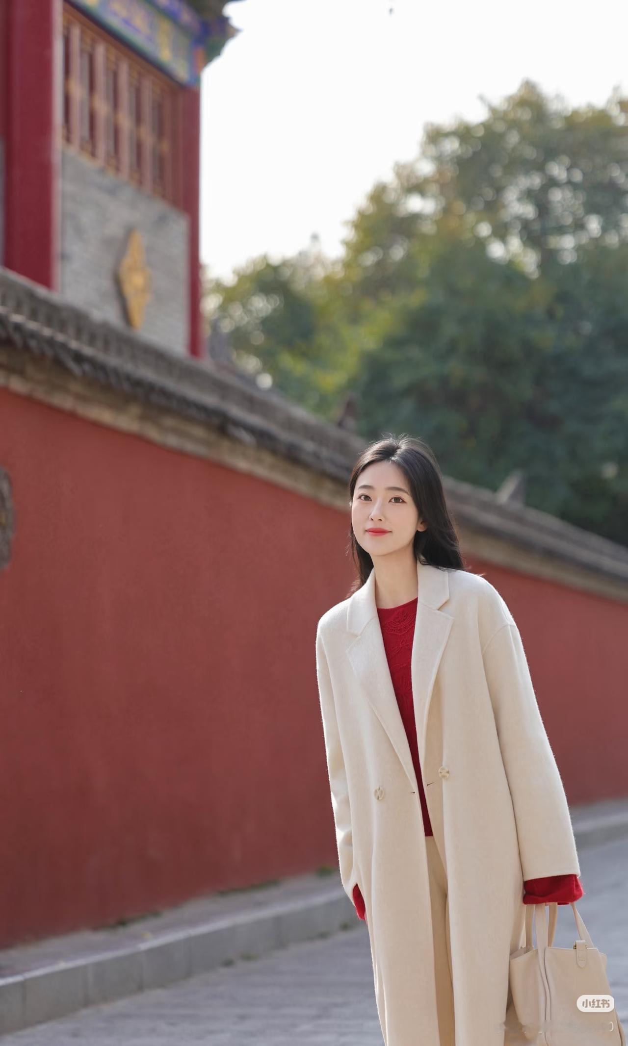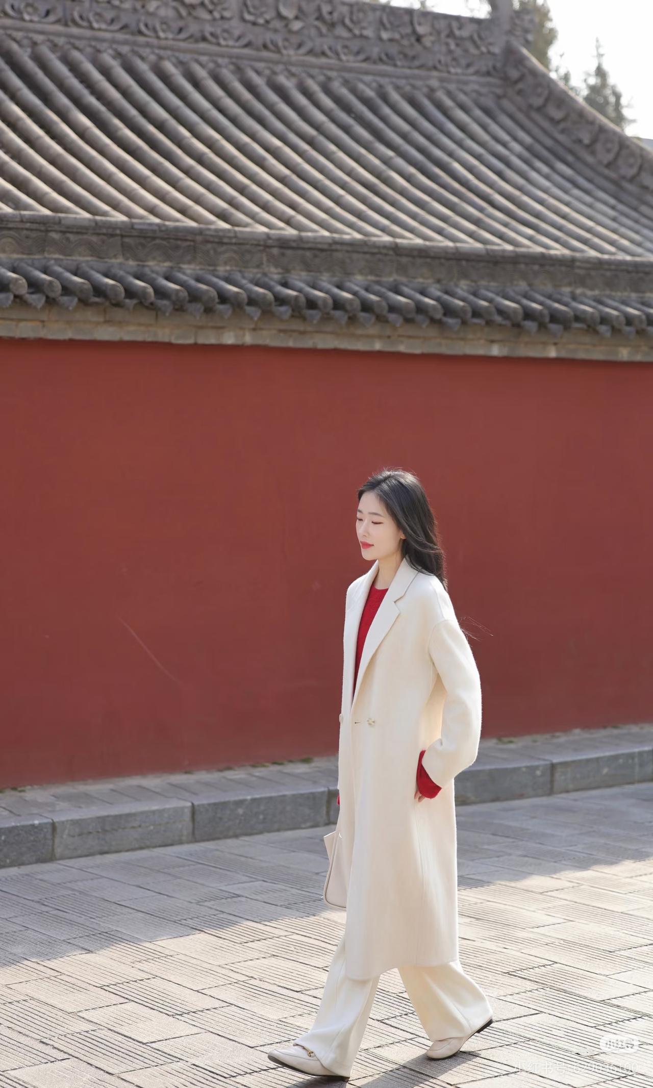 红墙映日影,白衣拂春风。