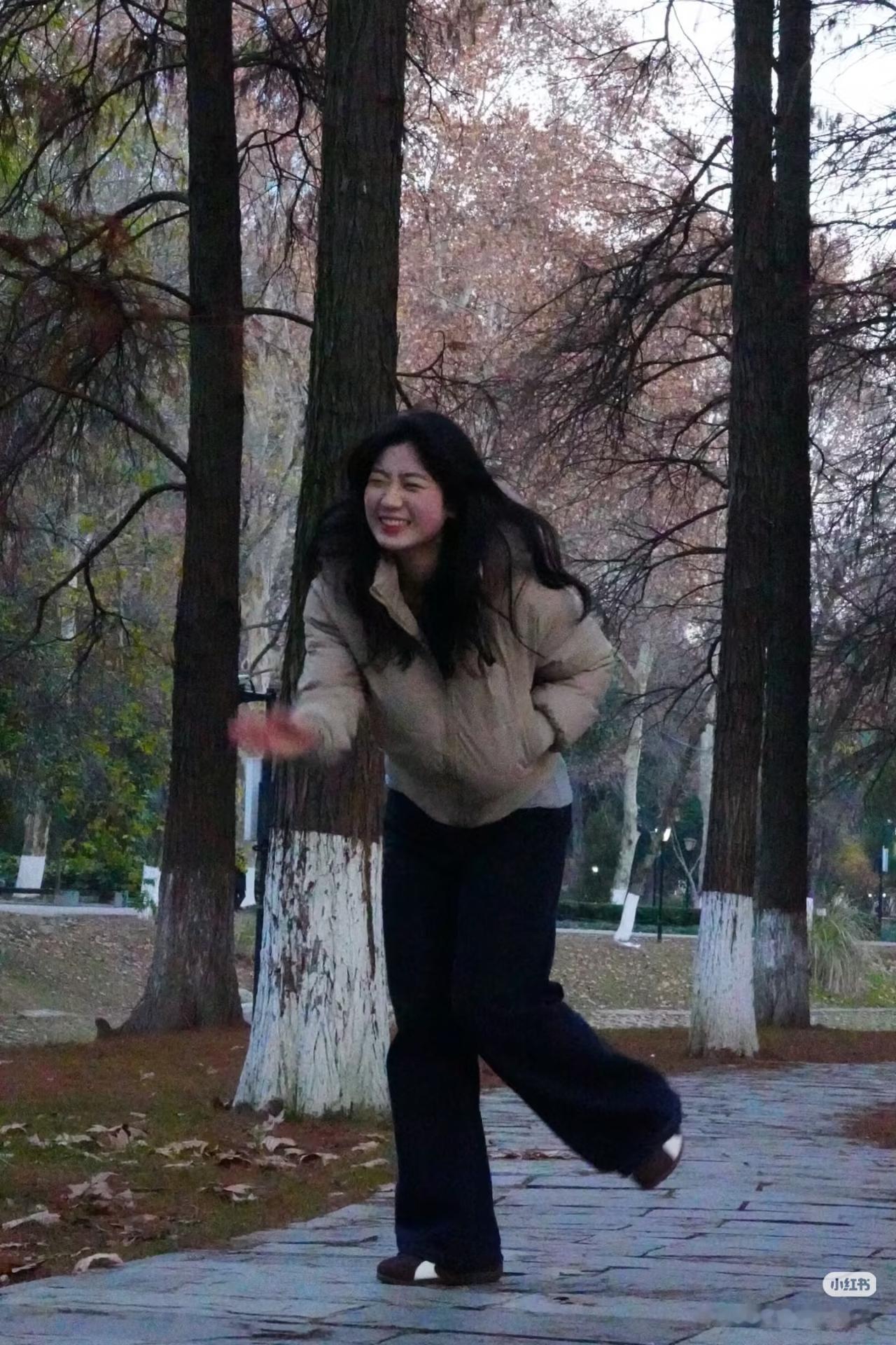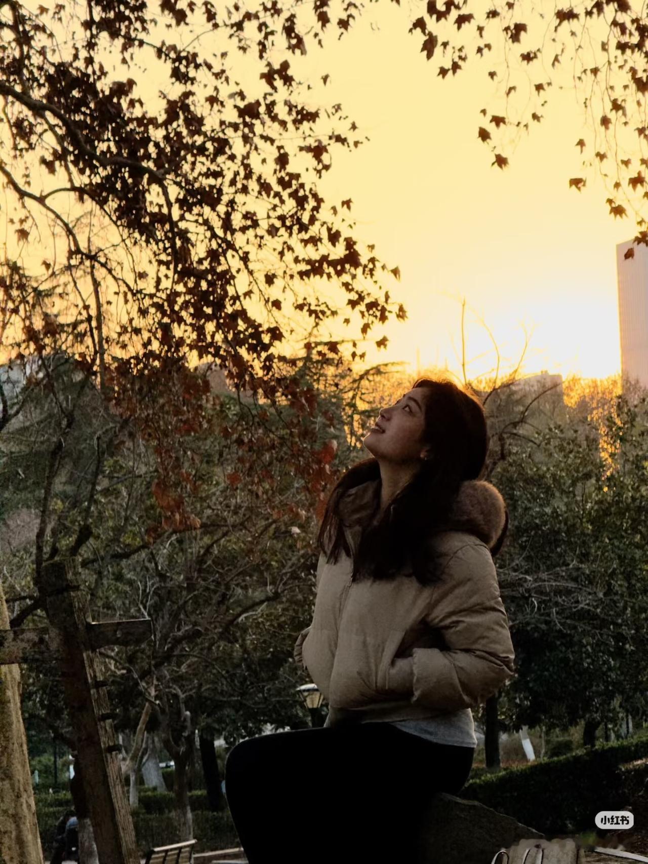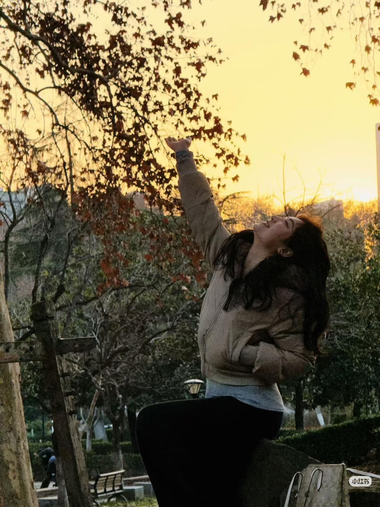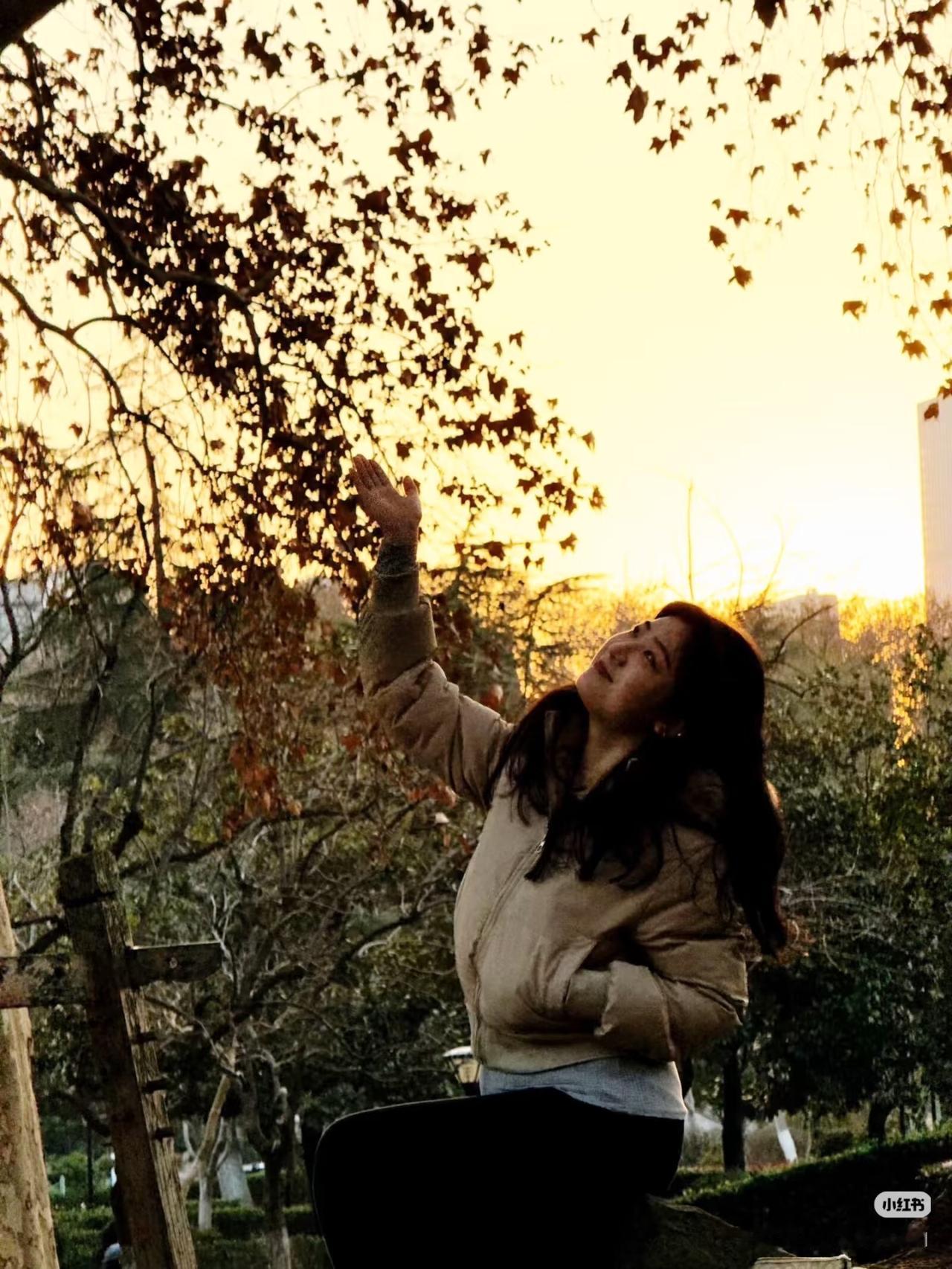 秋叶轻摇,美人含笑。