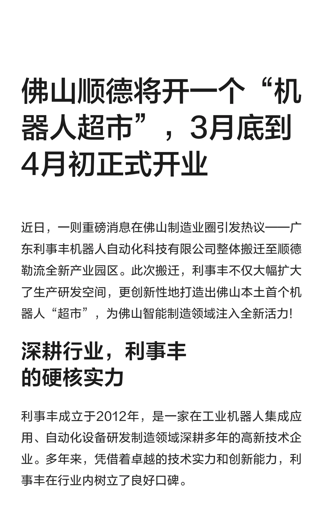 佛山顺德将开一个“机器人超市”