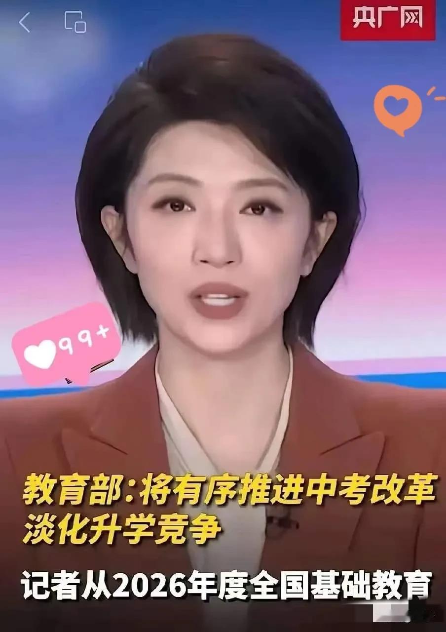 昨晚央视就那么几句话,我却听出了一身鸡皮疙瘩。教育部正式官宣,2026 中考改革落地。不考偏题怪题、不搞超纲。彻底告别死记硬背,告别机械式刷题。优质高中指标到校大幅扩容,民办严禁跨区掐尖。 这哪是普通的考试调整,分明是给教育祛魅、给家庭减负的重磅福音!直接掐断择校内卷、刷题内耗的根源,让教育回归育人本心,普通家庭的孩子终于能公平追梦。 全国多地优质高中指标到校比例提至70%以上,名额直接分配到每所初中,农村校、薄弱校的孩子,不用拼学区房也能稳稳迈进重点高中大门。 民办高中被严令禁止跨区掐尖招生,彻底打破少数学校垄断优质生源的局面,公办民办站在同一起跑线,教育均衡真正落到实处。 中考命题全面依标出题,超纲题、偏怪题彻底清零,机械记忆类题型占比压到20%以内,重点考思维与应用,孩子不用再熬夜死记、盲目刷题。 我敢说,这次改革直击教育最痛的顽疾,把家长从补课焦虑、学区房焦虑里解放出来,把孩子从无尽刷题中拉回来,守护最本真的童年与成长。 过去几年,中考内卷愈演愈烈,家庭年均补课开销动辄两三万,孩子小小年纪戴上厚眼镜,身心疲惫,只为应付毫无意义的偏题怪题。 不要以为这只是改改考试规则,这是重构教育公平的底层逻辑,让努力比出身更重要,让能力比刷题更管用,彻底告别唯分数论的畸形导向。 以往优质生源被疯狂掐尖,普通初中越办越弱,如今指标兜底、掐尖叫停,每所初中都能留住好苗子,区域教育质量一步步拉平。 无数普通家庭不用再为择校砸锅卖铁,不用再逼孩子死学硬背,孩子可以全面发展,家长可以安心生活,这才是教育该有的样子。 平心而论,教育改革难在动真格,这次教育部实打实落地举措,不玩虚的、不搞形式,用制度守住公平,用规则守护每一个孩子的未来。 从命题到招生,从减负到公平,2026中考改革每一条都戳中民心,既解决当下焦虑,又铺就长远发展之路,真正做到了以人民为中心办教育。 这场教育变革,惠及亿万中小学生与家庭,让教育回归温暖与初心,让每个孩子都能凭借自身努力,收获属于自己的成长与希望。 各位读者你们怎么看?欢迎在评论区讨论。