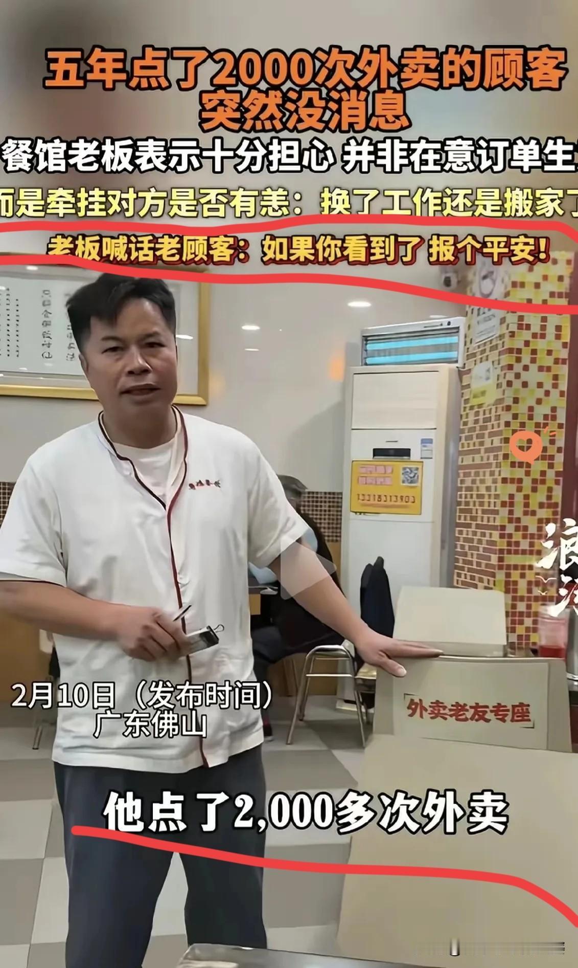 谁能想到,一顿普通的外卖,能吃出五年的牵挂。佛山这位粤菜馆老板,真的把人心暖透了。 五年2000次订单,不是流水,是日复一日的信任与陪伴。顾客用胃口撑腰,老板用真心做菜,素未谋面,却早已是彼此生活里的老熟人。 突然一年多没下单,老板没想着少赚多少钱,满脑子都是担心。是不是搬家了?是不是遇到难处了?他不要订单,只要一句平安。这份不带功利的惦记,在快节奏的当下,太珍贵。 很多生意只讲利益,可真正长久的,从来都是人心。烟火气里最动人的,从来不是味道,是人情味。 愿这位老顾客一切安好,也愿心软的老板,被更多温柔以待。你身边有没有这样默默牵挂你的陌生人? 粤菜真谛 佛山禅城外卖 粤菜定律 佛山餐馆 粤菜老字号 粤菜馆外卖 粤菜外卖