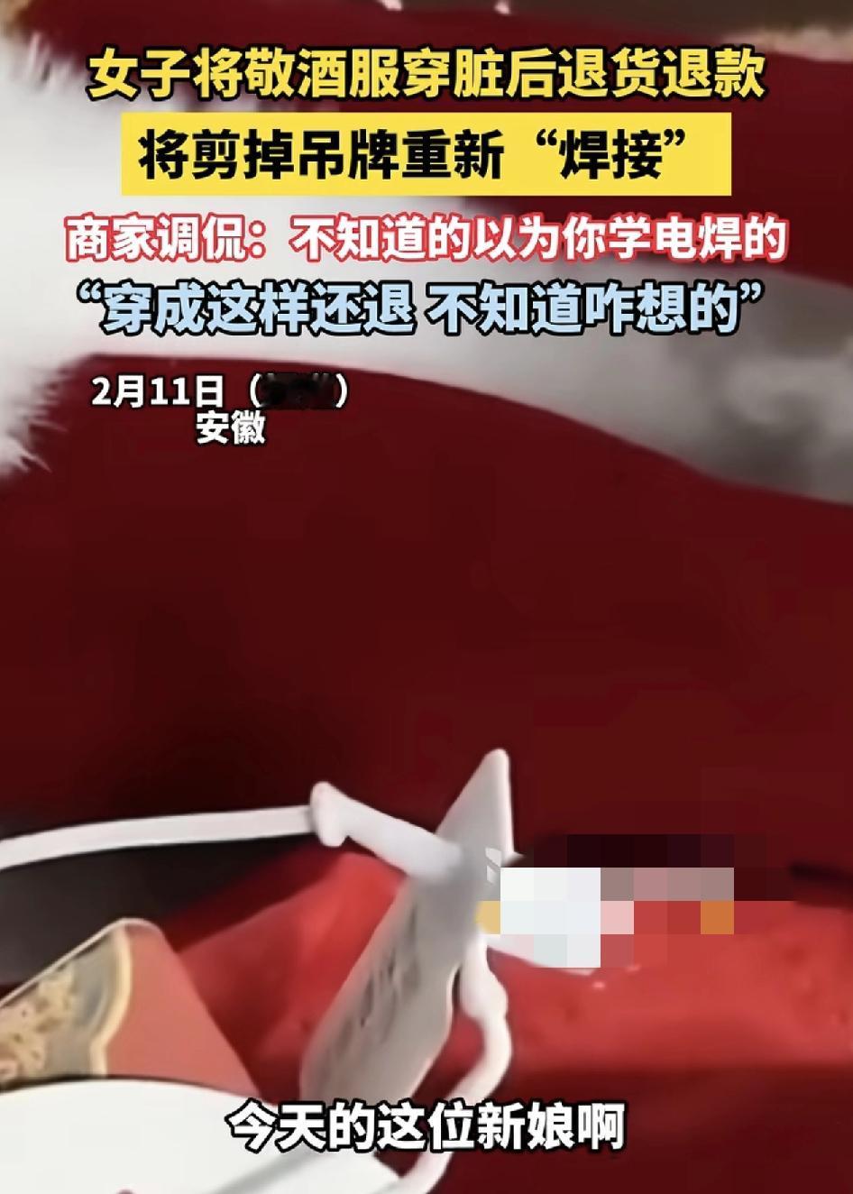 安徽一位婚纱电商商家收到一位客户的退货,发现新娘子已经是把礼服穿过了再退货,而且吊牌重新焊接起来,商家吐槽称,女子大学学的一定是电焊专业,焊接的如此完美。再看一下嫁过去的地方是山东的某一个镇,商家调侃不知道对方嫁的好不好,但路一定不好走,因为裙摆下面穿得都不成样子了。