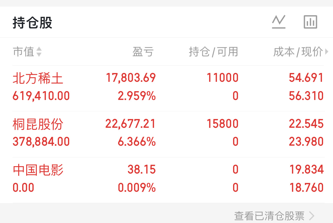 今天来迟啦~~~中国电影出掉了……以后还是抓龙头吧新进了桐昆跟北方稀土