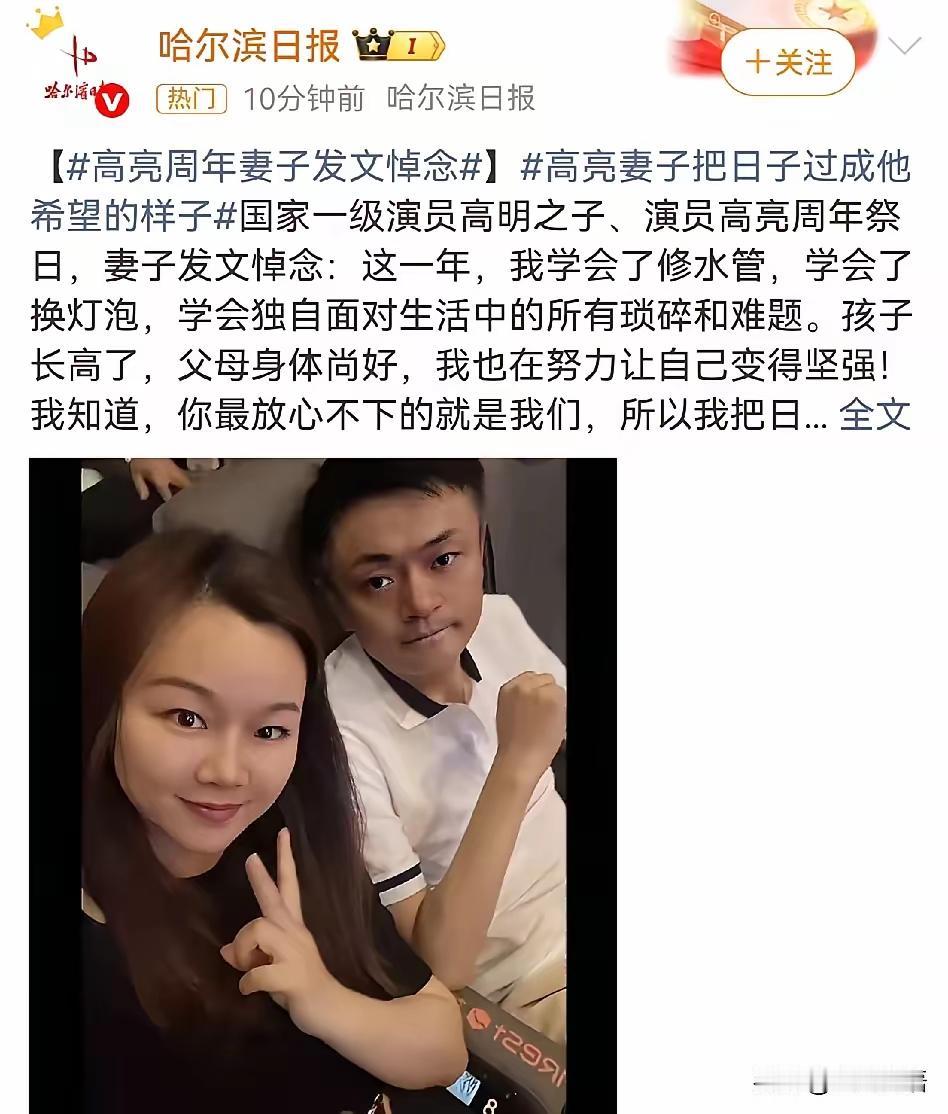再有名的人如果是离世一个月都会被人们遗忘了,如果是一年除了亲朋好友外无人记得了你,2月11日是演员高亮离世一周年祭日,高亮是国家一级演员高明的儿子,2025年2月他因突发肝病在成都离世,年仅50岁,这位塑造了《地下交通站》杨保禄、《驻站》刘所长等经典配角的演员,永远留在了观众的记忆里。丈夫离开的这一年,高亮妻子从被呵护的人变成了家里的顶梁柱,学着修水管、换灯泡,独自扛下了生活里所有的琐碎难题。