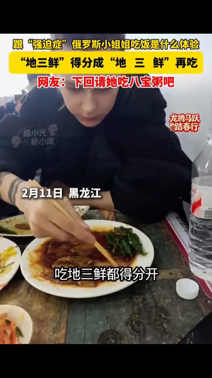 跟"强迫症"俄罗斯小姐姐吃饭是什么体验?"地三鲜"得分成"地三鲜"再吃。网友:下回请她吃八宝粥吧。 龙腾马跃,踏春行。 2月11日黑龙江。吃地三鲜都得分开,辣椒是辣椒,茄子是茄子,土豆是土豆,圆葱是圆葱。