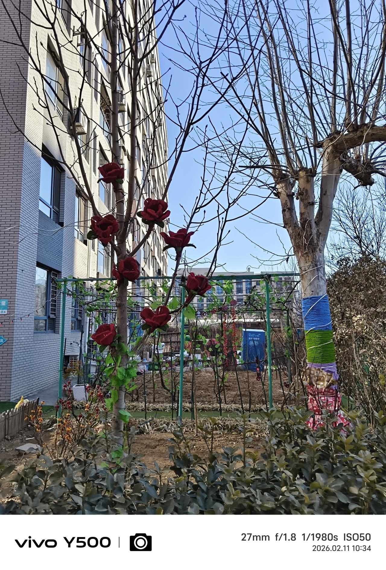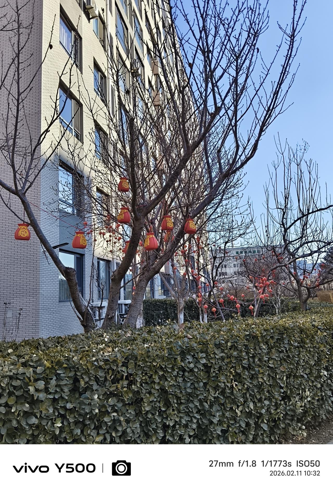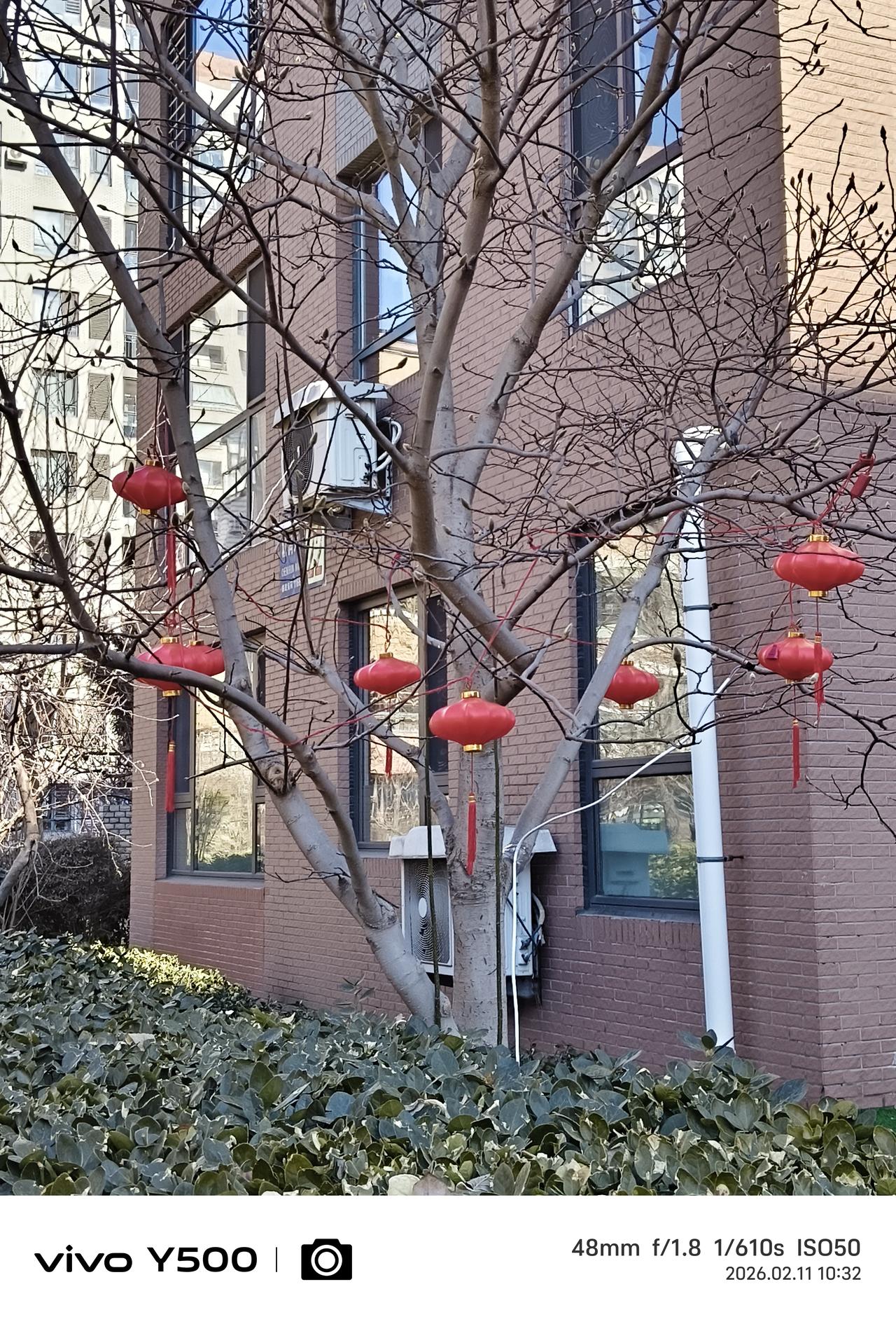 小区里住的一楼的邻居们,在他们的房前屋后的树上挂上各种款式的红灯笼,喜气洋洋,在小区里走过都能感受到的快乐的节日气氛,想起那句歌词:今~咱们老百姓真呀么真高兴! 老祖宗传下来的春节,属于华夏民族的每一个人,不分贫贱富贵,不分种族地域,无论健康疾病,全民平等祖宗相授。