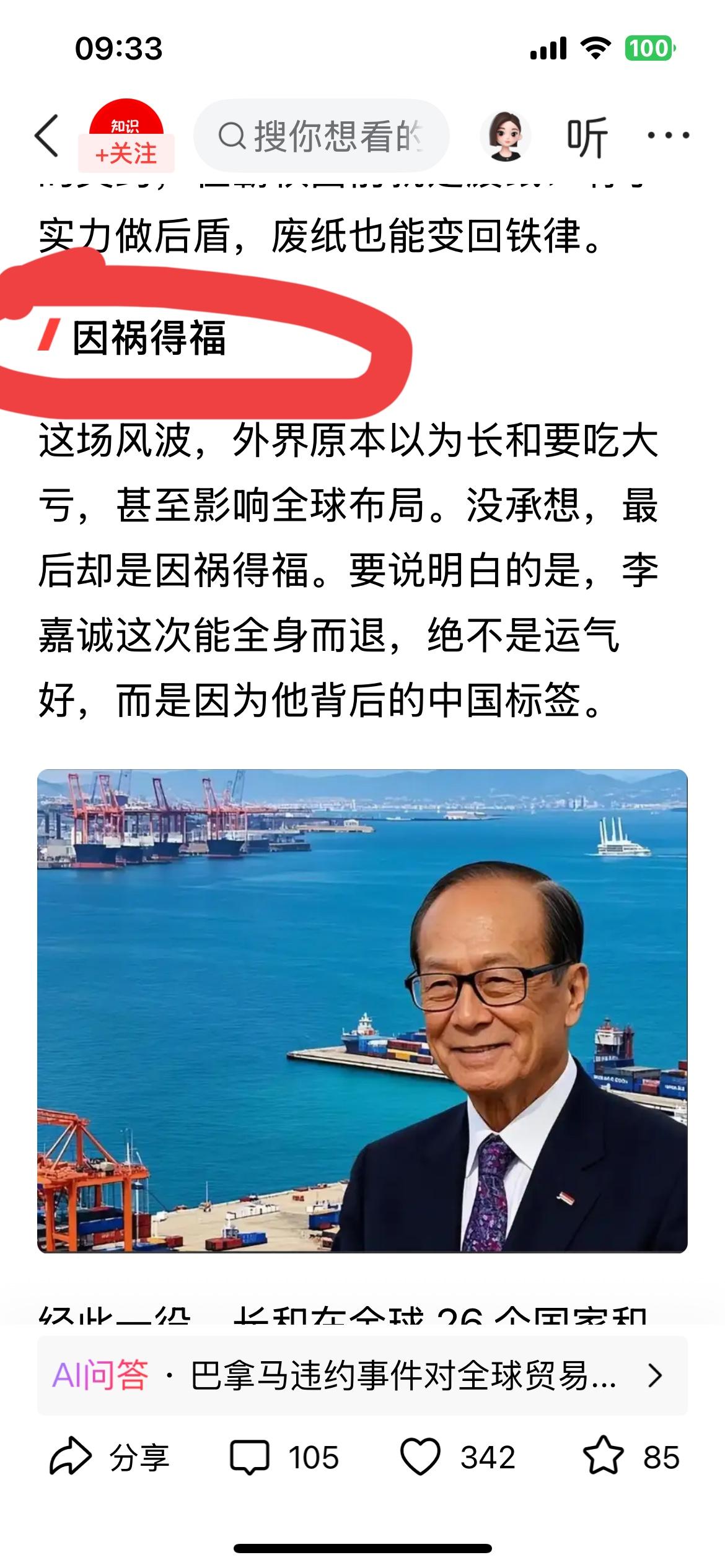 巴拿马港口事件李嘉诚因祸得福: 巴拿马变相承认长和能继续运营,之前的判决先搁置; 巴拿马的态度转变说白了就是,长和你们继续干吧,港口我们不收了; 巴拿马后期可能会提供更长的租期、更低的税率、赔偿停工损失,这对李嘉诚来说无疑是意外收获。 至此巴拿马港口事件尘埃落定,李嘉城因祸得福,保住了合法经营权,巴拿马实打实踢到了钢板,最终低头认栽。