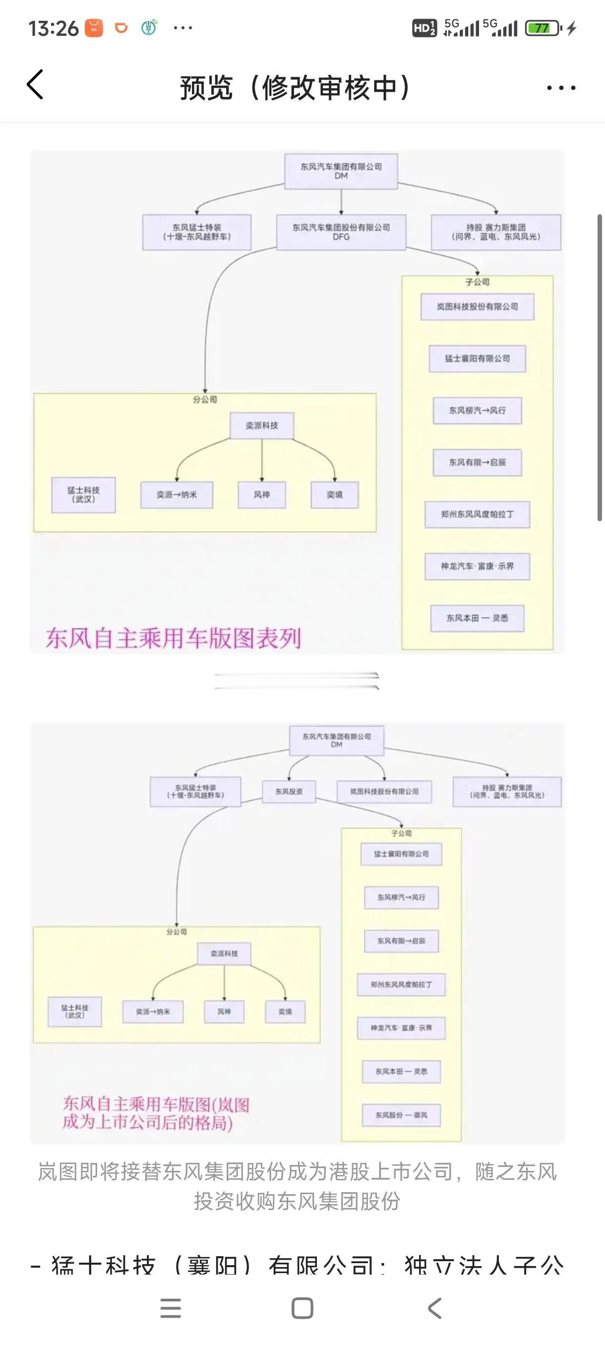 猛士襄阳和猛士科技同一领导层,在不合并的情况下如何运行? 两者现状——二者平行、无隶属,共用猛士品牌 。 - 领导层重合 董事长:周锋(两公司同任) ,CEO/经理:万良渝(两公司同任) 。核心高管(产品/技术/营销)一套班子、双向任职。 不合并的核心运行逻辑:一套班子、双主体、一体化运营 治理层:同一决策中枢,双主体合规 董事会/高管层完全重合:同一班人同时担任两家公司董事/高管,重大决策一次审议、分别落地 。 集团统筹+独立法人:东风集团层面统一战略,两家公司独立法人、独立财务、独立担责,满足国资监管与合资合规。 授权机制:CEO万良渝对两公司统一指挥、分别授权,避免重复决策。 业务层:品牌统一、产品区隔、研产供销协同 - 品牌一体化:一个猛士、一个调性,营销/用户/售后统一体系。- 研发:统一平台、分工开发 - 共用东风+华为技术底座(IPD流程、智能越野平台)。 - 武汉主导高端技术/底盘/智驾;襄阳主导轻量化/成本优化/量产。