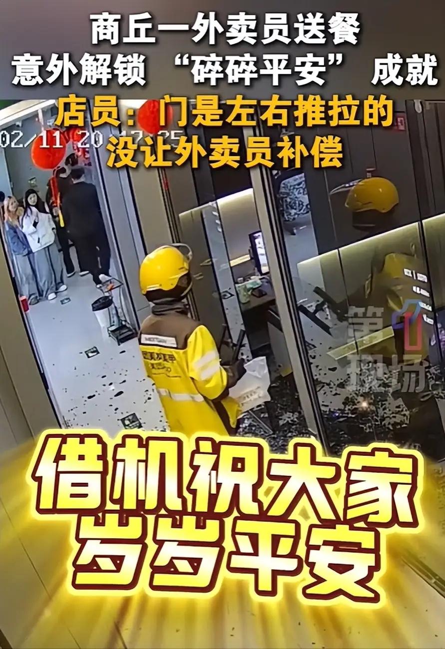 谁能想到, 外卖小哥一次小小的失误,竟意外解锁了全网最暖的“碎碎平安”! 2月11日河南商丘,一位外卖员到店取餐,没看清门的方向,轻轻一拉,钢化玻璃门直接碎了一地。小哥当场僵在原地,又慌又怕,生怕要赔上大半天的辛苦钱。 可接下来的一幕,直接看哭很多人。店家没有一句责备,反而笑着说“碎碎平安,不用赔”,一句话就化解了所有窘迫。 这世上最珍贵的从不是完美不出错,而是陌生人之间的体谅与温柔。跑单的人怕赔钱,开店的人怕损失,可一句包容,就能把矛盾变成温暖。 生活本就充满小意外,多一点心软,少一点计较,普通人的善意,才是最治愈的力量。 你在生活里遇到过这样暖心的小事吗?