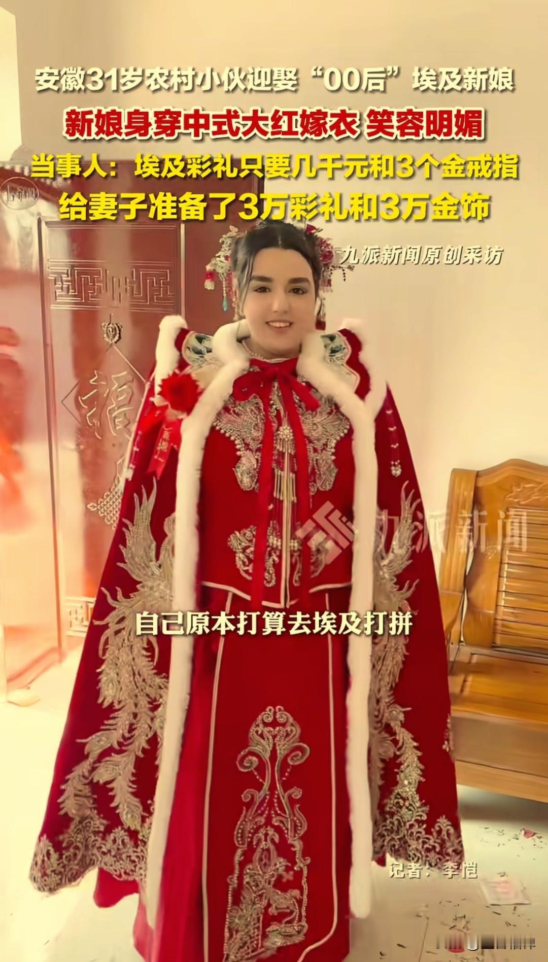 安徽小伙娶“00后”埃及新娘:3万彩礼主动给,中式嫁衣惊艳全村 近日,安徽阜