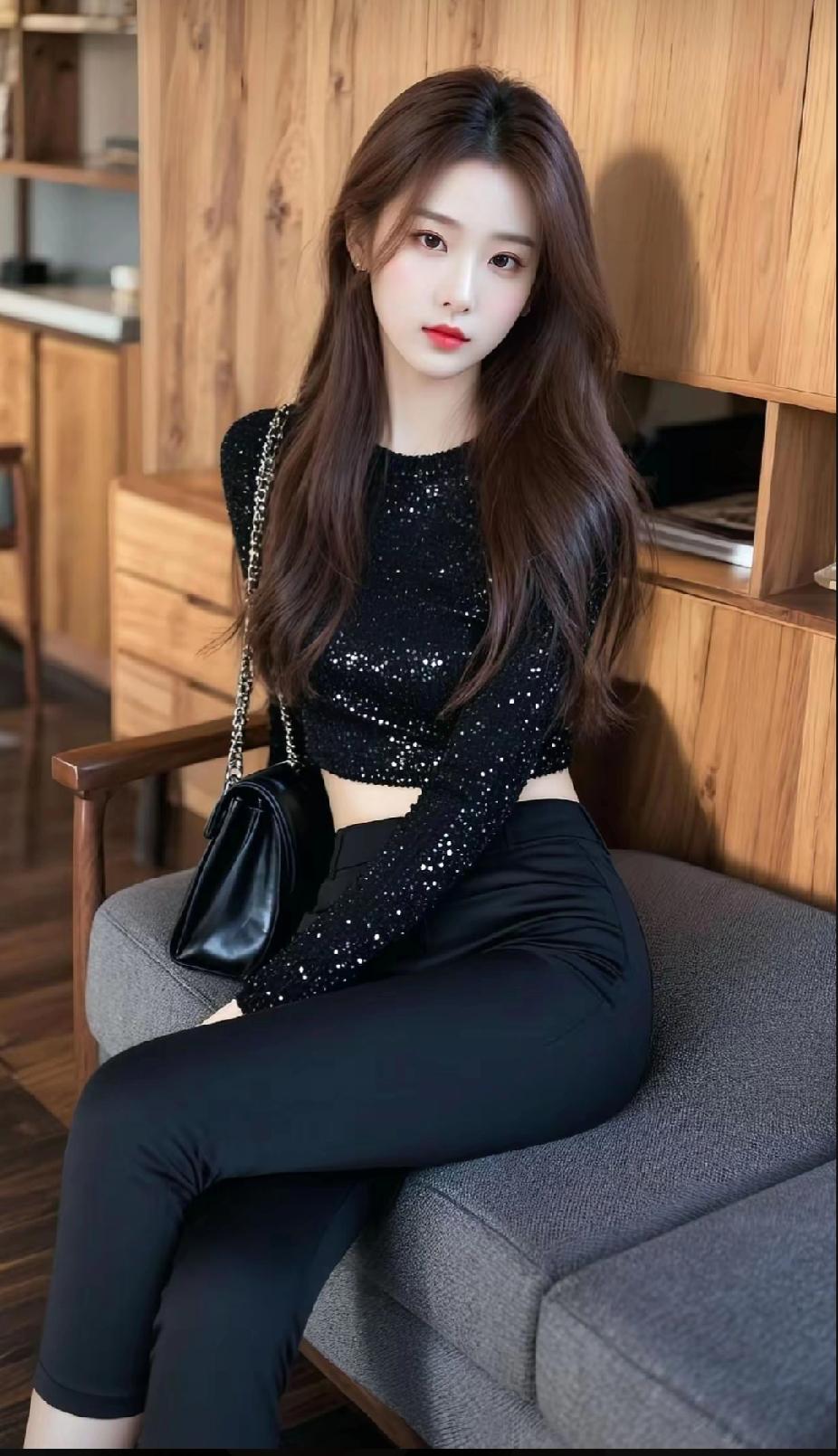 黑色闪亮上衣搭配紧身裤,简约又时尚,完美展现身材曲线!性感紧身裤穿搭