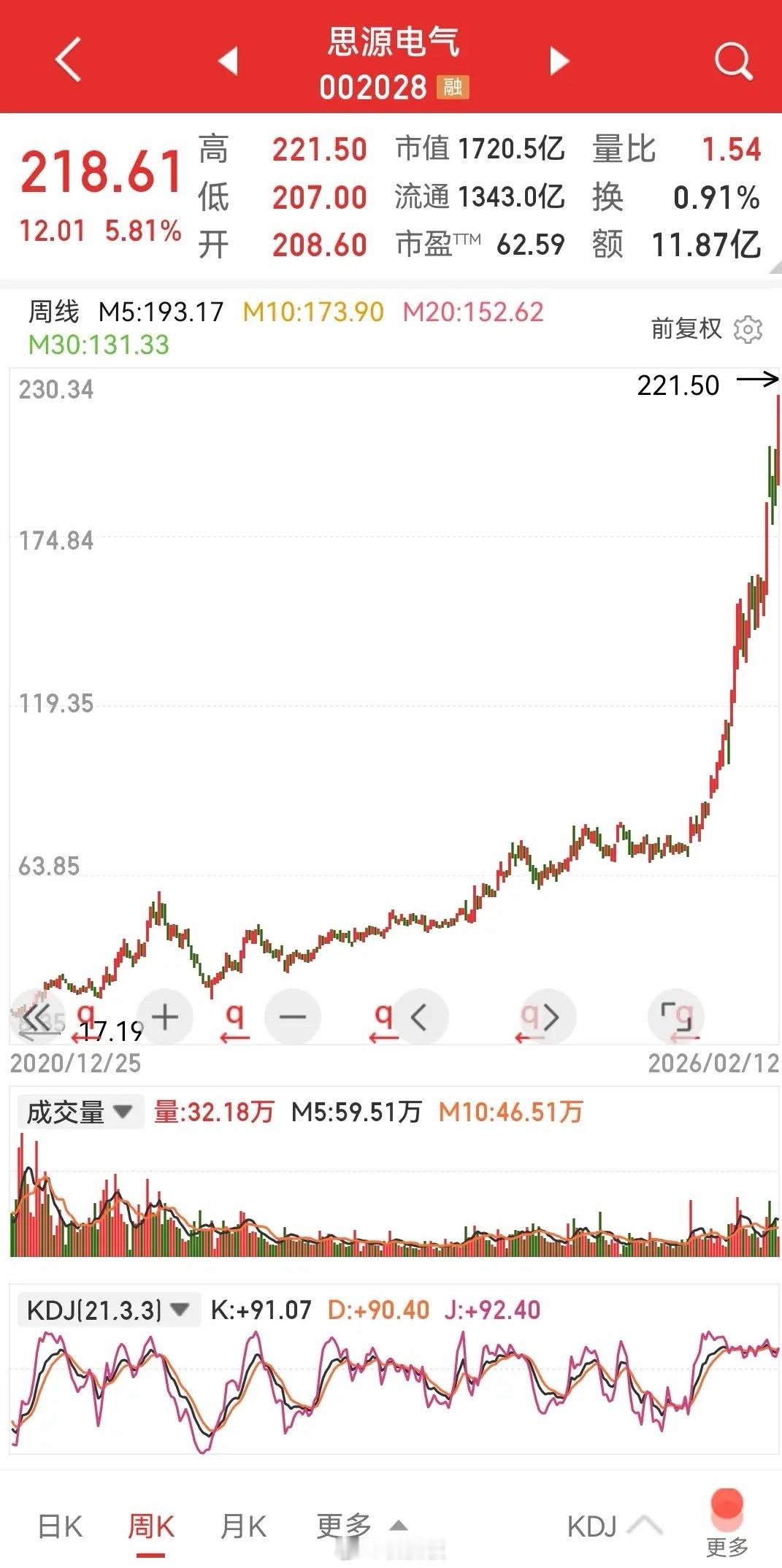 思源电气,想象不到股价都冲到220元了。