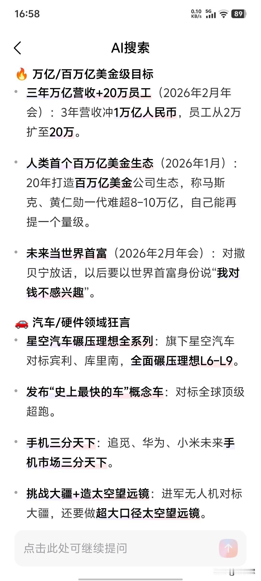 最近网上出现一位狂人,各种吹牛,要成为世界首富。我上网搜索一下他吹过的牛,三年营收一万亿。他说造车,造手机和无人机。看一下现在各手机汽车营收排名。就算小米加比亚迪也没万亿。一个没有产品就开始吹牛三年营收排名国内第一这哪来的底气?看一下他们现在的营收400亿已经相当不错了,三年后一万亿?我想起那个要移民火星的马斯克。计划一再推迟。其实,他有没登陆火星已经不重要,重要的是他靠吹牛把股票吹上去了。吹牛不过是营销,一旦形成了热度就有曝光度,连广告费都省了。就像当年的凤姐如何吹自己有多美一样。其实,如果他只是吹牛然后脚踏实地做产品这没问题,就怕他是为了割韭菜,然后一堆人上当。