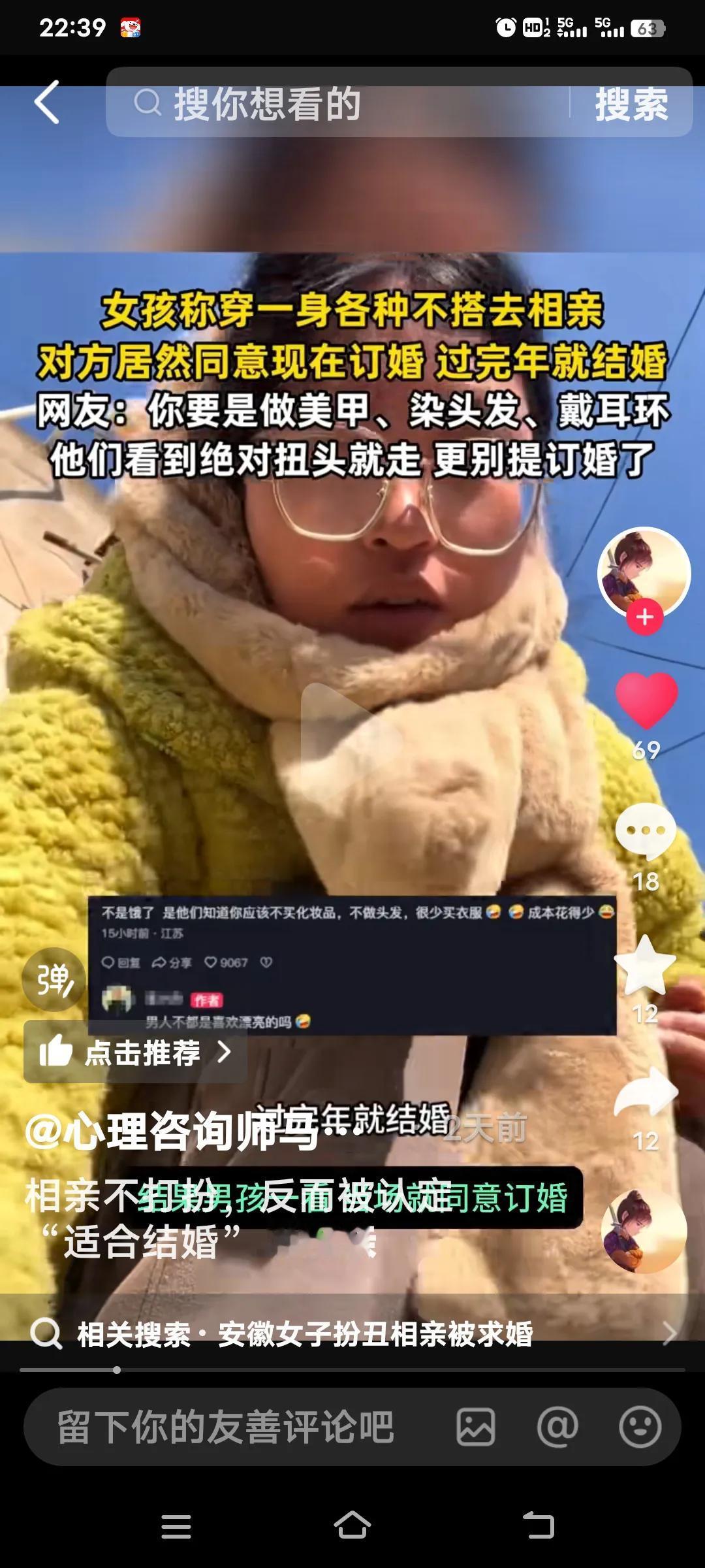安徽这位姑娘的相亲经历太有趣啦!被家里催着结婚,她不愿将就,便扮丑去相亲。头发随意扎起,戴着老土的眼镜,身着黄绿相间的棉衣,搭配咖色棉裤,把自己裹得像个“粽子”,本以为能把对方吓跑。 结果男方异常热情,全程滔滔不绝,还对她赞不绝口,相亲结束就提出订婚过完年结婚,把姑娘弄得不知所措。网友们看法各异,有人觉得男方精明,看中了姑娘的朴素与顾家;有人则调侃男方“饥不择食”。 其实,女方也很疑惑:我穿得这么土气,他怎么就答应了呢?这剧情就像电视剧里演的,只能说男孩太有眼光了,居然搞定了一个故意乱穿衣服的女孩,真是厉害! 女生相亲条件 女生相亲心理 相亲方式
