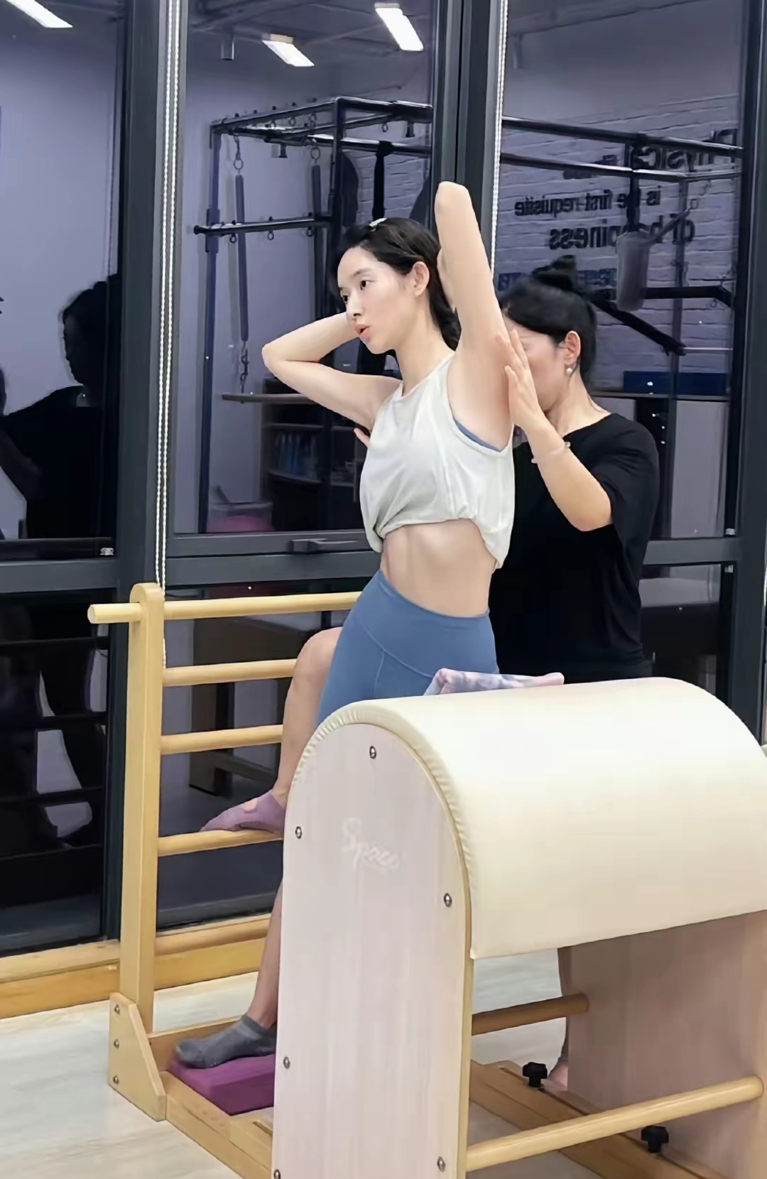 女明星为了保持身材也是下了大苦功夫的,看了一组王玉雯的健身照片。本来她这个体格就不算胖,四肢也很匀称,但是依然找了个专业老师训练体态。整个人又是挂在铁杆上,又是在小木床上摆姿势折腾。从她穿的衣服也能看出来,她根本就不胖,身上线条也很好。都已经这么完美了,还要努力。明星这碗饭真不是一般人能吃的。