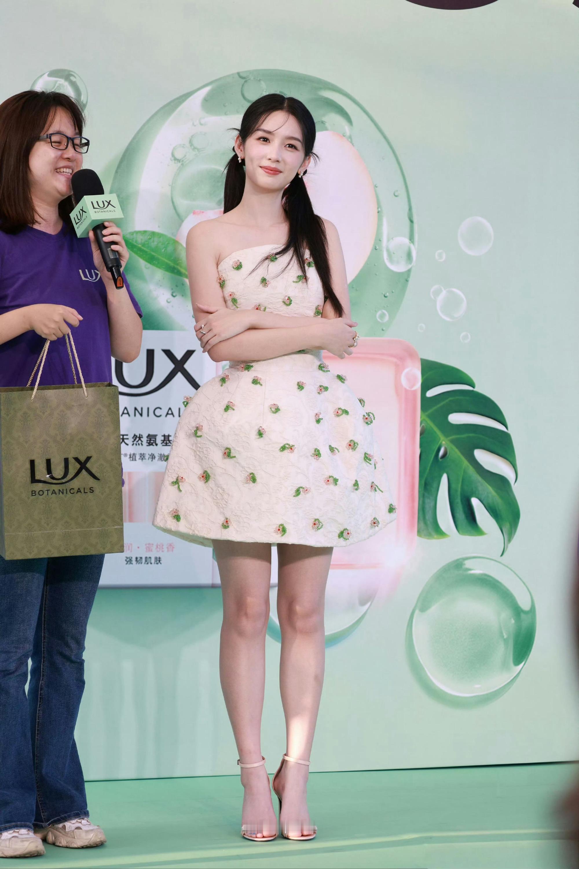 周也这个腰好细,抹胸花裙好看,腿型也好看,生图也这么美。周也