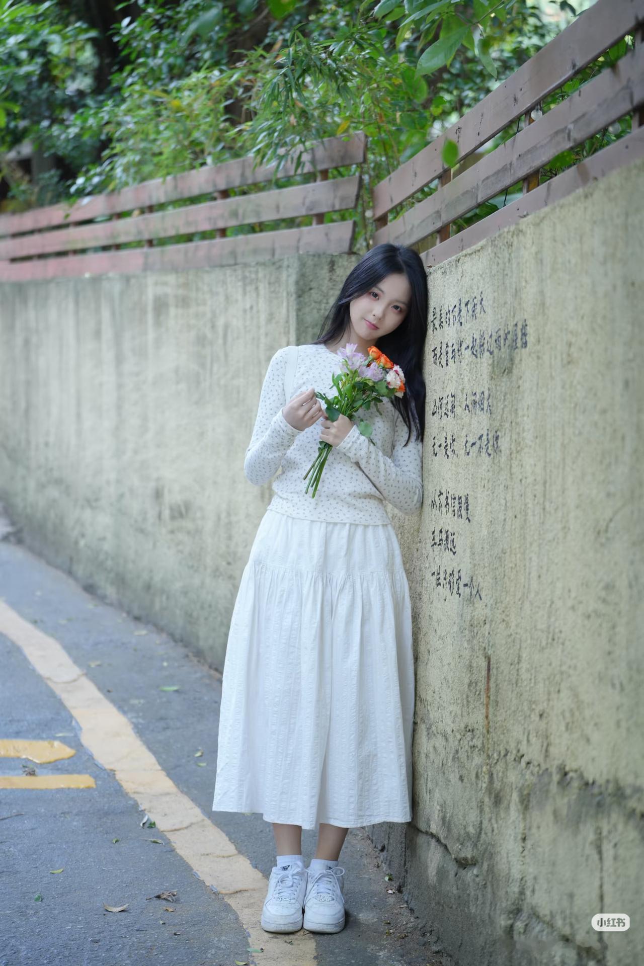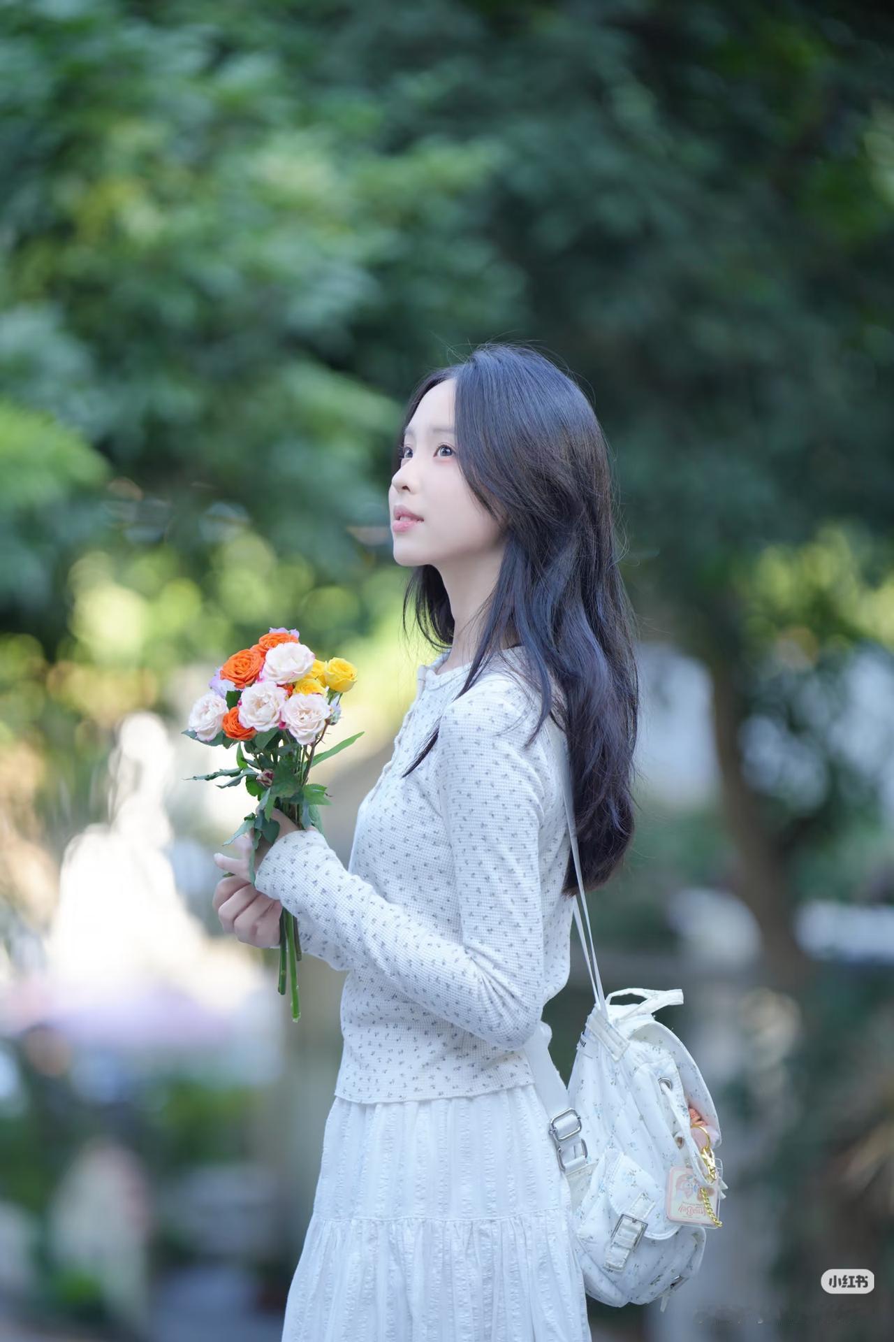 温柔冬日,白衣少女,静谧竹林,时光静好。