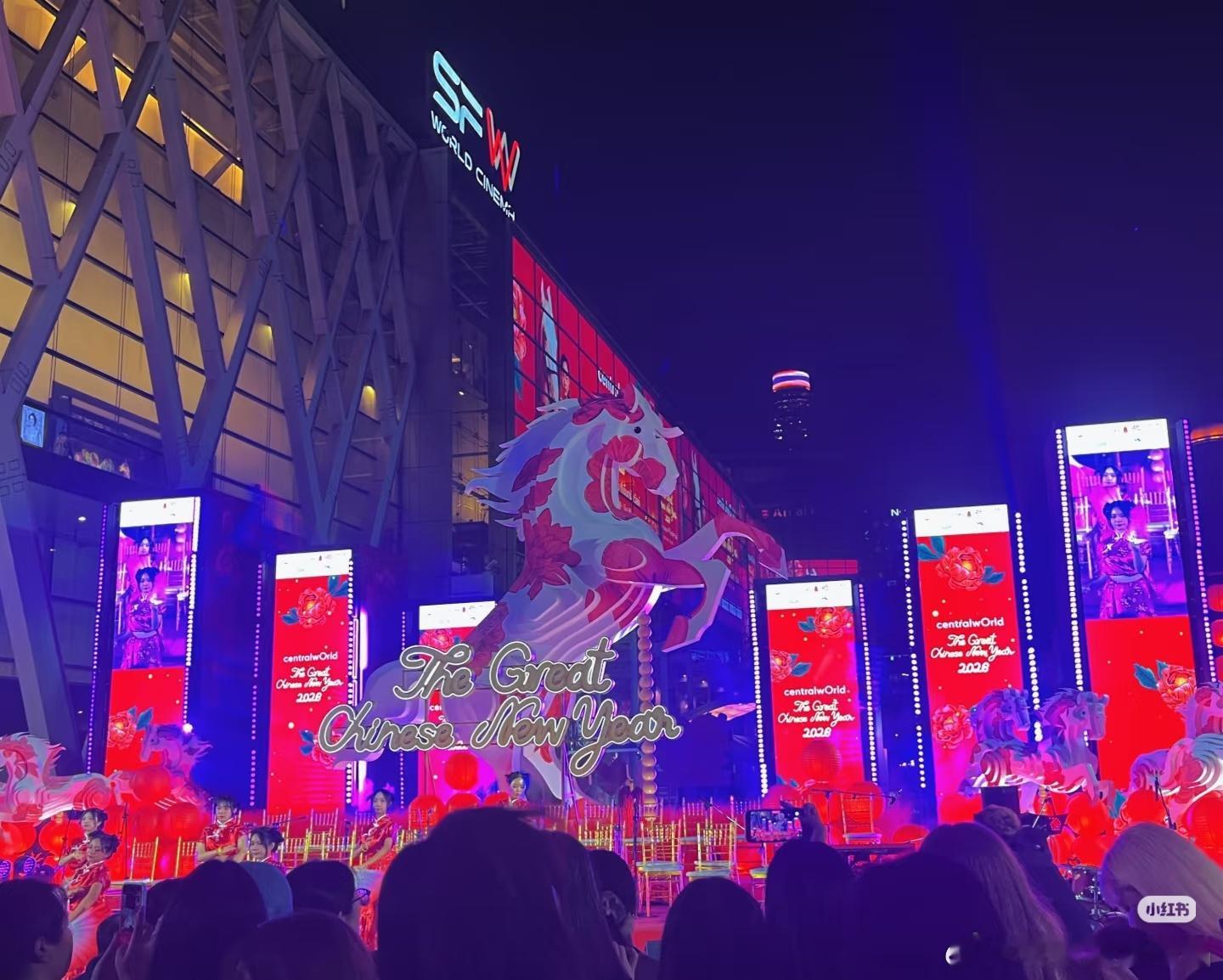 泰国暹罗 siam 区最繁华的百丽宫和 centralworld 这里举办新年活动,直接大招牌360°环绕标明 The great Chinese new year!