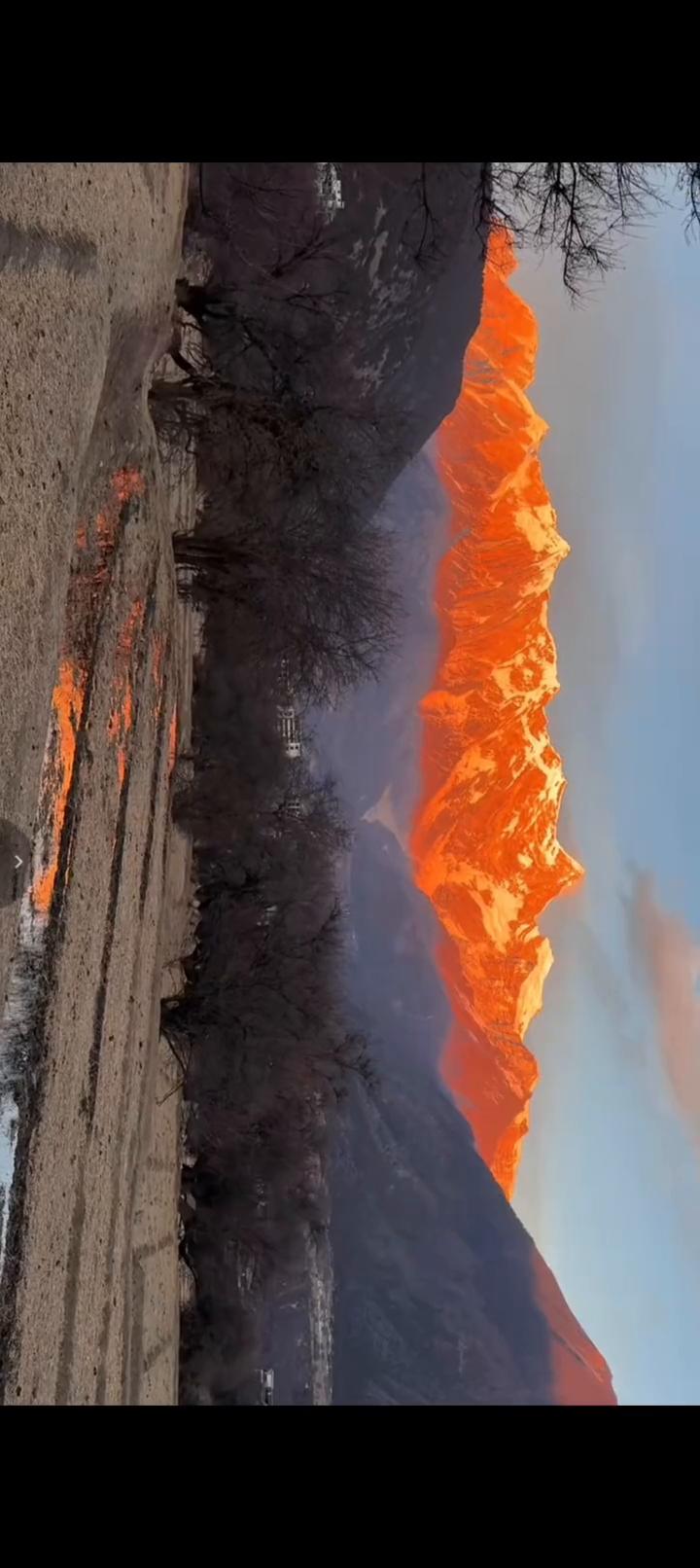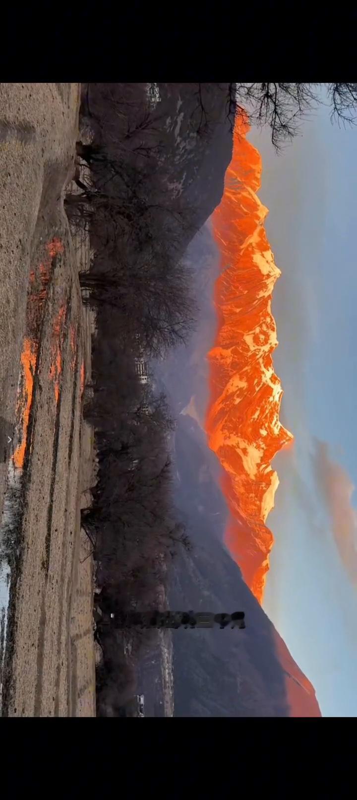 大家别眨眼,把手机横过来。看看这个是什么?南迦巴瓦峰的日照金山,满金的金山。传说中谁能看到它一次可以足足幸运一整年。所以它还有另外一个名字叫十人九不遇和修女峰。因为它时刻都被笼罩着一层云,一年12个月里边它只会出现三个月。这么近的金山一年也遇不到几次,太漂亮了。 祝大家每一个人阖家欢乐,幸福安康,好运连连。扎西德勒。