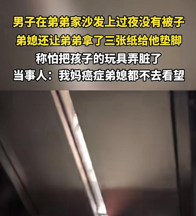 “男子照顾癌母多日,借宿弟弟家却被嫌脏,3张纸垫脚,睡沙发没被褥,男子默默离开蜷